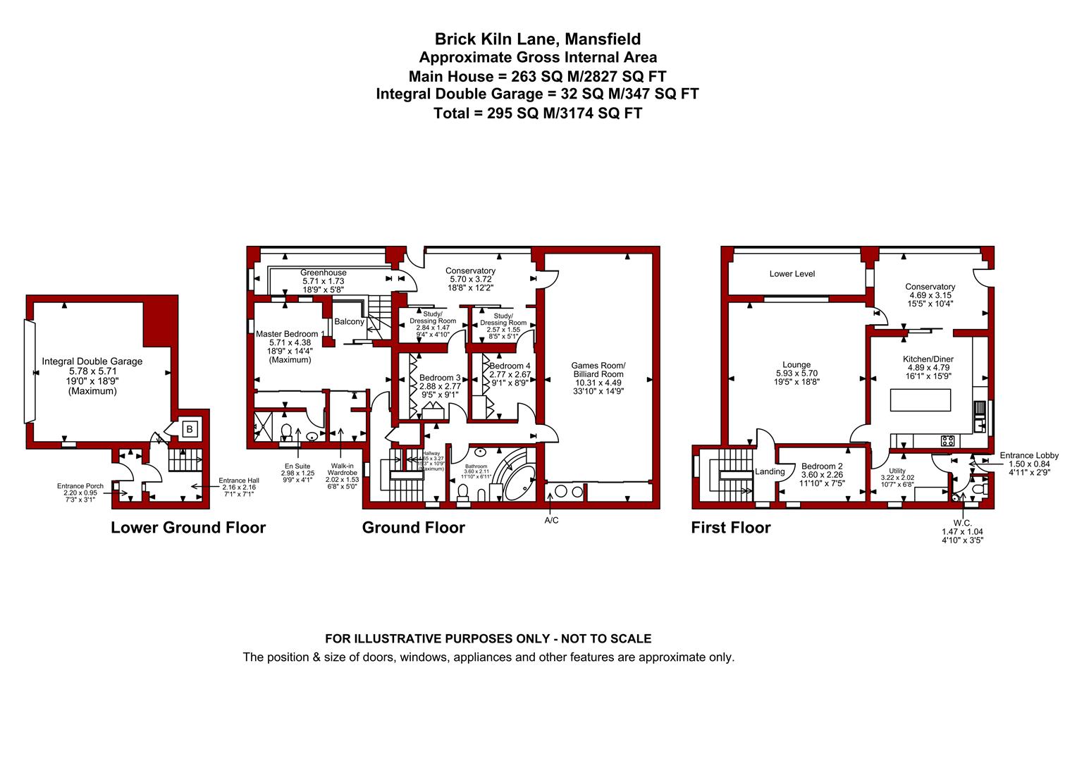 The main entrance door opens to an initial entrance hall area with access to the garage. Stairs lead up to the main hallway which leads to a family bathroom, a large billiard/games room, a conservatory with 6.5m vaulted ceiling, plus further vaulted greenhouse/conservatory and bedrooms three and four each with their own separate study/dressing room area with direct access to the conservatory. Stairs lead up to an initial landing with access to a master bedroom suite with fitted wardrobes, a separate walk-in wardrobe and an en suite. A sliding patio door opens to a balcony area with steps leading down to the greenhouse/conservatory. Stairs up to the main landing leads to bedroom two, a large lounge and another conservatory with wonderful south facing rear views over the rear garden and lake beyond. Completing the accommodation is a kitchen/diner, utility, side entrance lobby and a WC. The property has majority hardwood double glazed windows, solar panels (owned by the property) and electric ducted warm air central heating.