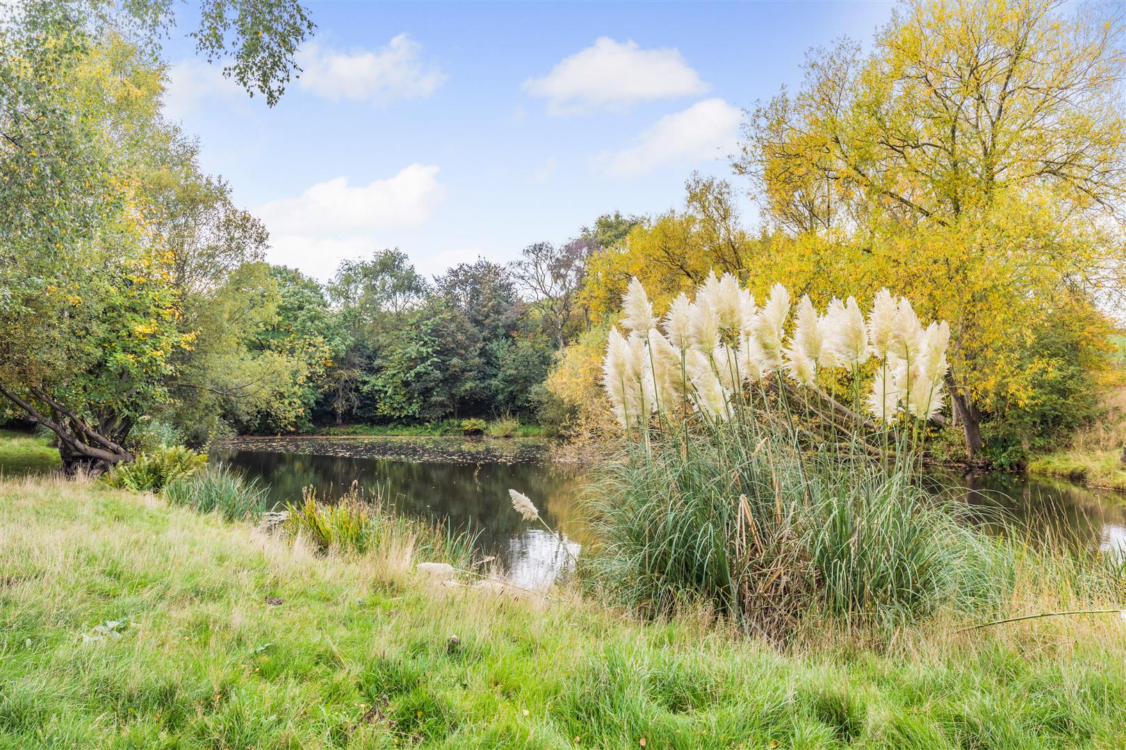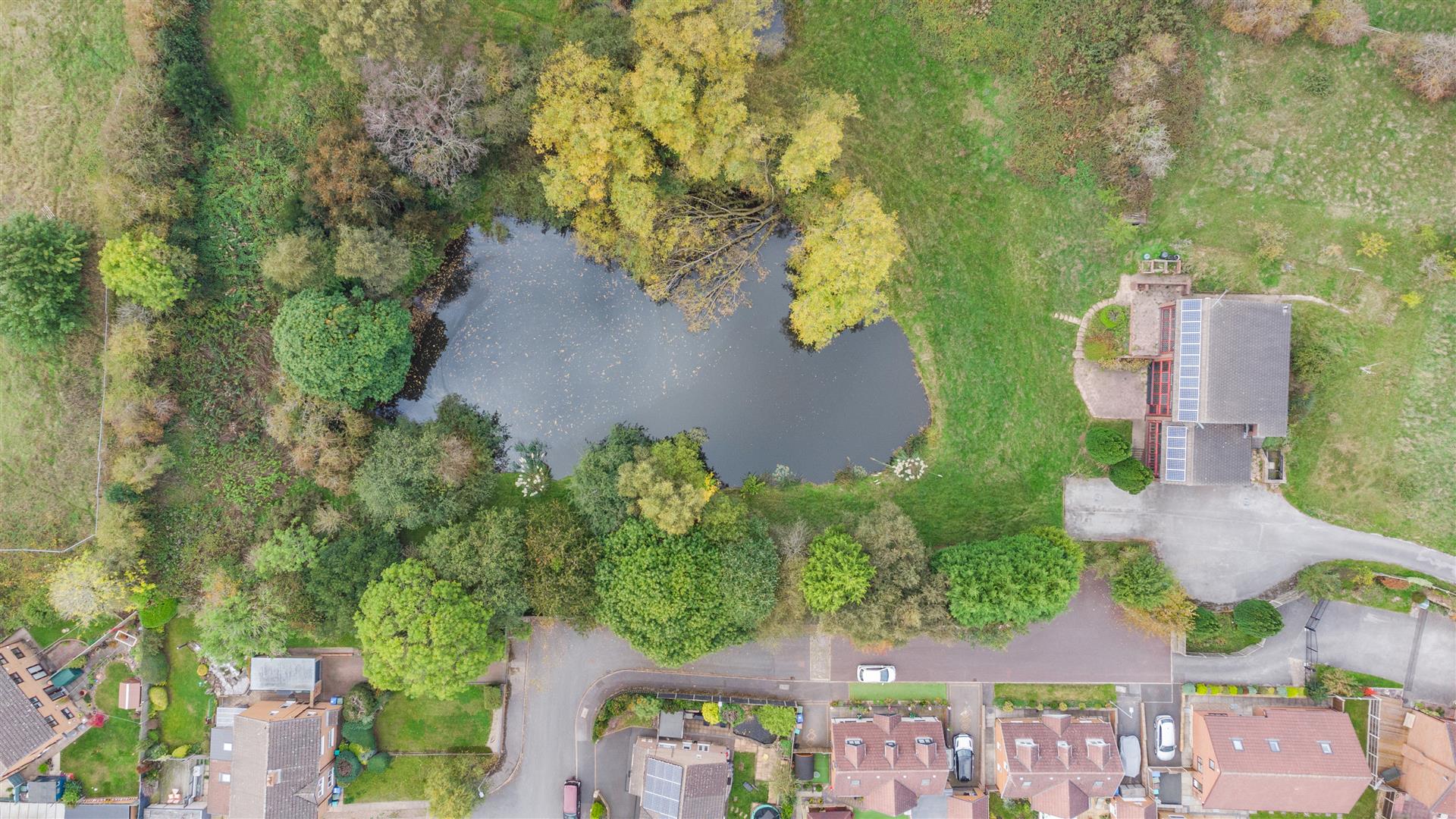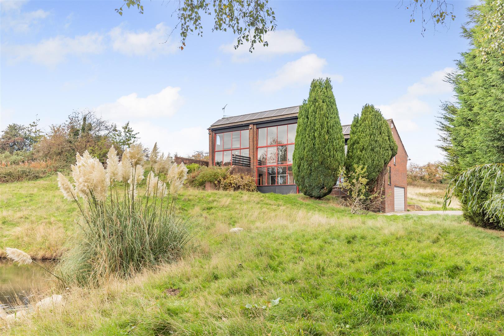 Outside - Fishpond Hill Farm occupies a fantastic and elevated position from the adjacent dwellings to the eastern boundary, hidden from the road and is accessed from Brick Kiln Lane by means of a long, private driveway and also from double gates at the end of Romsey Place cul-de-sac which runs alongside the driveway turning area. There is off road parking for numerous vehicles with turning space and an integral double garage with an electric up and over door. Steps to the front of the property leads up to the other side of the house at its highest point with pathway leading round to the rear of the property where there are two patios on different levels enjoying lovely south facing rear views over the garden and lake beyond. The gardens are also in need of an overhaul, centred around a large lake, currently laid to extensive grass to the front, side and rear with extensive, mature shrubs and trees surrounding the lake and to the eastern boundary.