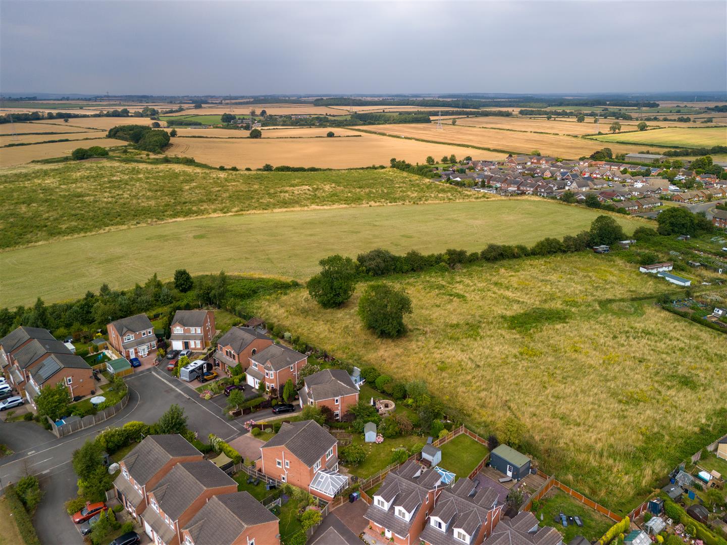 A modern four bedroom detached family house occupying a large corner plot at the end of a small cul-de-sac close in a semi-rural style setting bordering to open countryside.