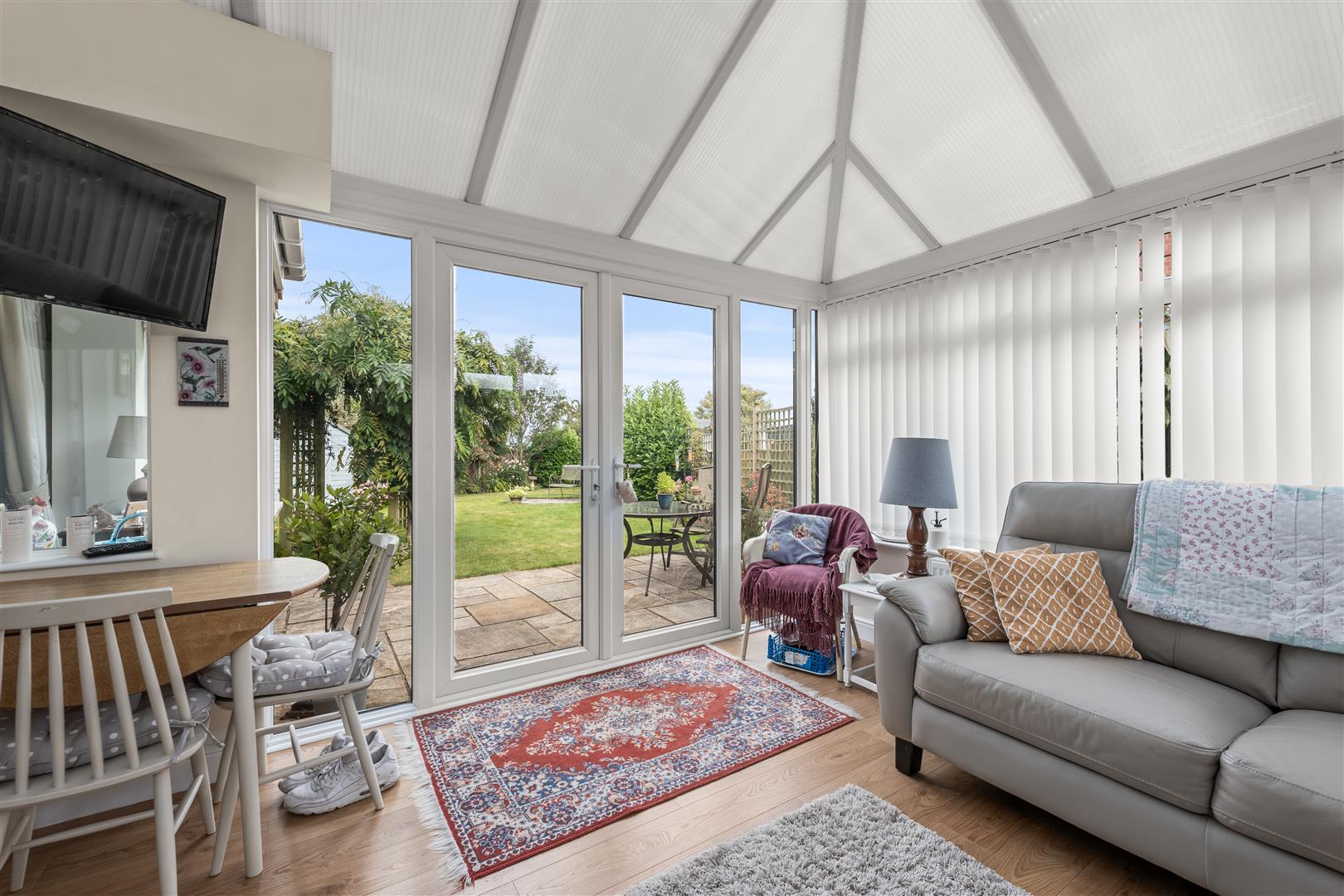 Conservatory - 3.58m x 3.58m (11'9" x 11'9") - With laminate floor, radiator and French doors leading out onto the rear garden.