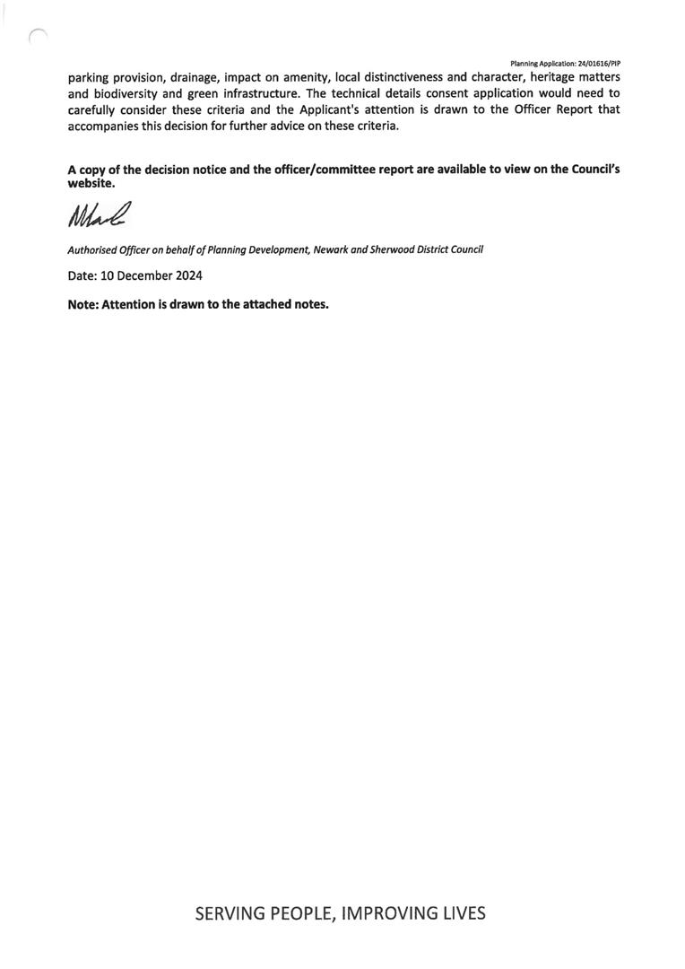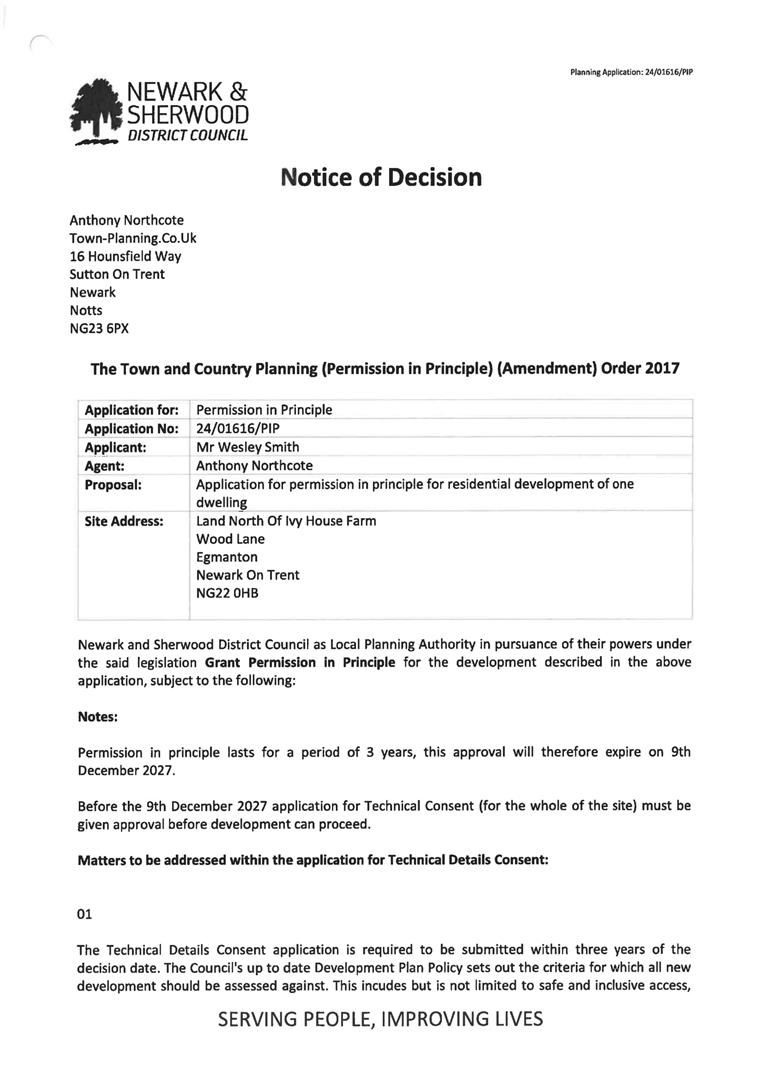 Town & Country Planning - Planning in Principle is granted under Newark & Sherwood District Council reference 24/01616/PIP granting Permission in Principle for residential development of 1 dwelling.
