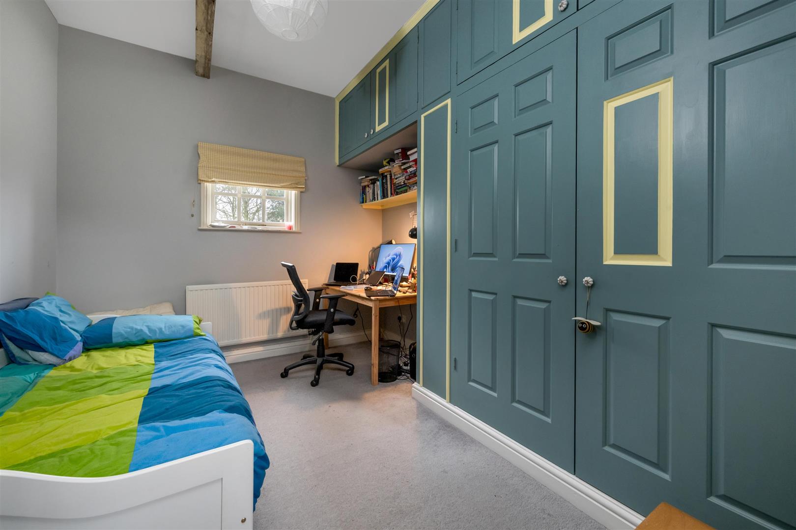 Bedroom Four - 3.63m x 2.92m (11'11 x 9'7) - Fitted double wardrobe with cupboards over, radiator, double glazed window to rear elevation, beamed ceiling.