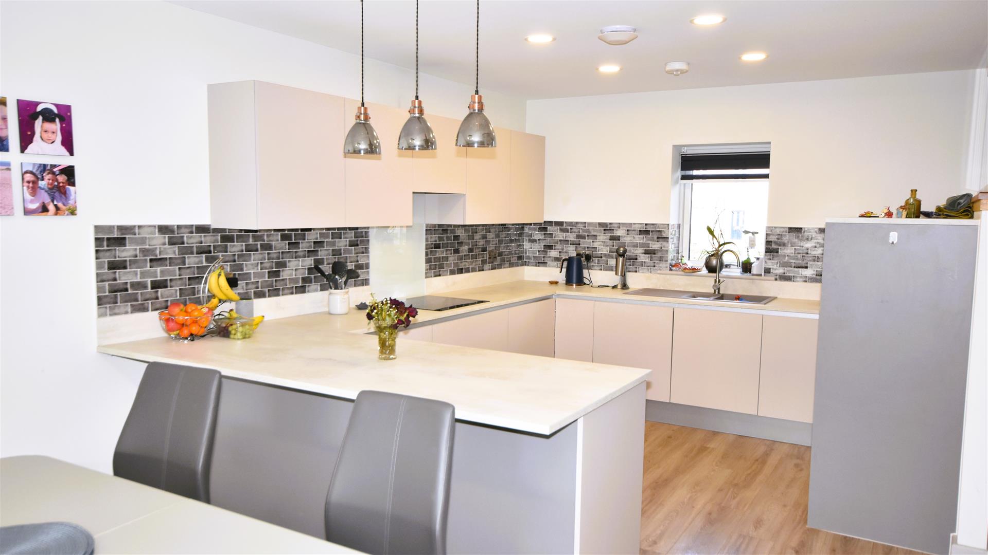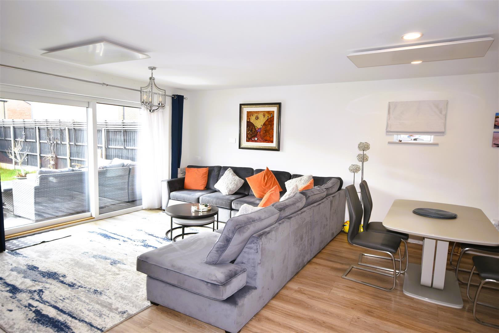 This modern eco-home is presented to a high standard and provides the following living accommodation: entrance hall with large storage cupboard beneath the stairs, WC with white suite, utility room with fitted units. The superb open plan living kitchen is fitted with high quality range of units and appliances and offers space for a dining table and large sofa with sliding patio doors to the rear elevation giving access to the patio and rear garden. There is a separate family living room.