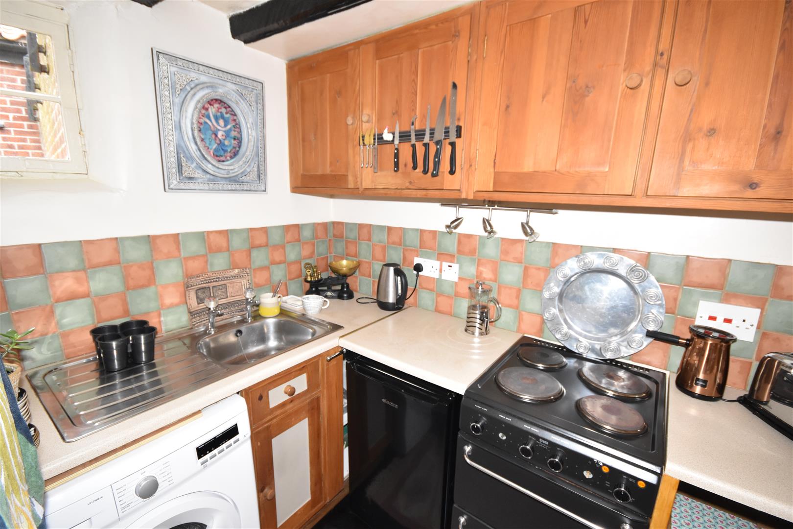The well presented living accommodation has a wealth of charm and character and comprises front entrance door leading to lounge with beamed ceiling and a delightful brick arch fireplace housing a wood burning stove. There is a small, yet neatly fitted, kitchen with pine units, rear hallway with staircase leading to the first floor and cupboard below. On the first floor there is a landing, shower room and bedroom one which is a double room with Yorkshire sliding window, beam ceiling and cast iron fireplace. From the landing a staircase rises to the second floor and attic bedroom two.