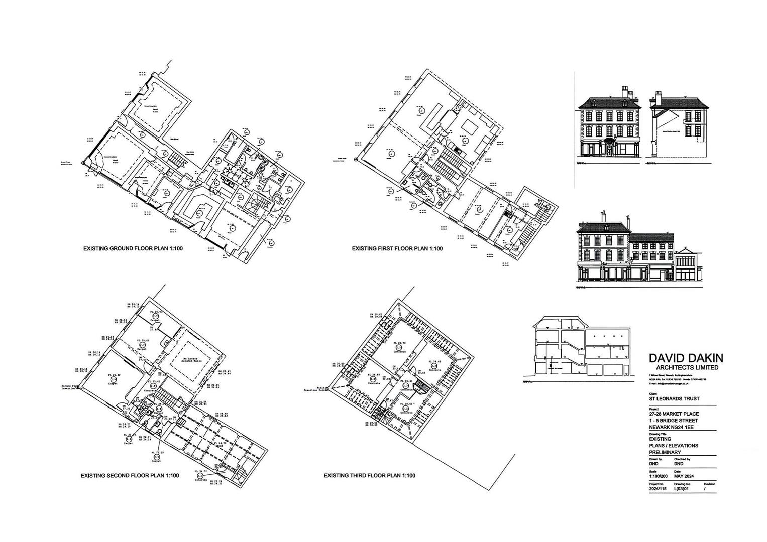 David Dakin Architects Limited have prepared plans with the possibility of obtaining Planning Permission for the change of use of the first and second floors of the building to flats (3 flats on each floor, totalling 6 flats). Access would be provided via the Market Place doorway. Internally, the flats would have kitchen/living/dining areas, one bedroom and a bathroom.