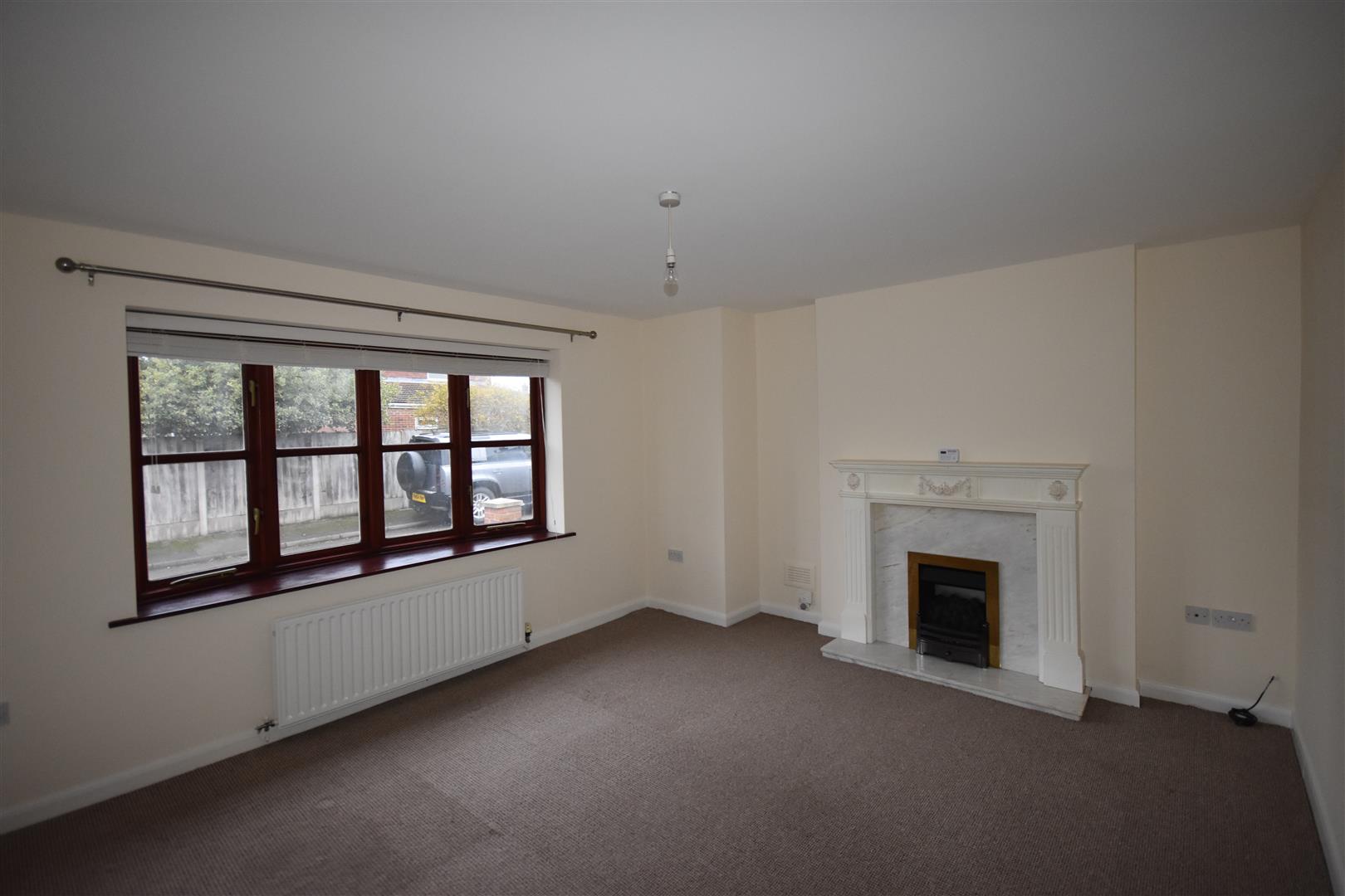 Coal effect gas fire, bow window, double panelled radiator, fitted venetian blind.