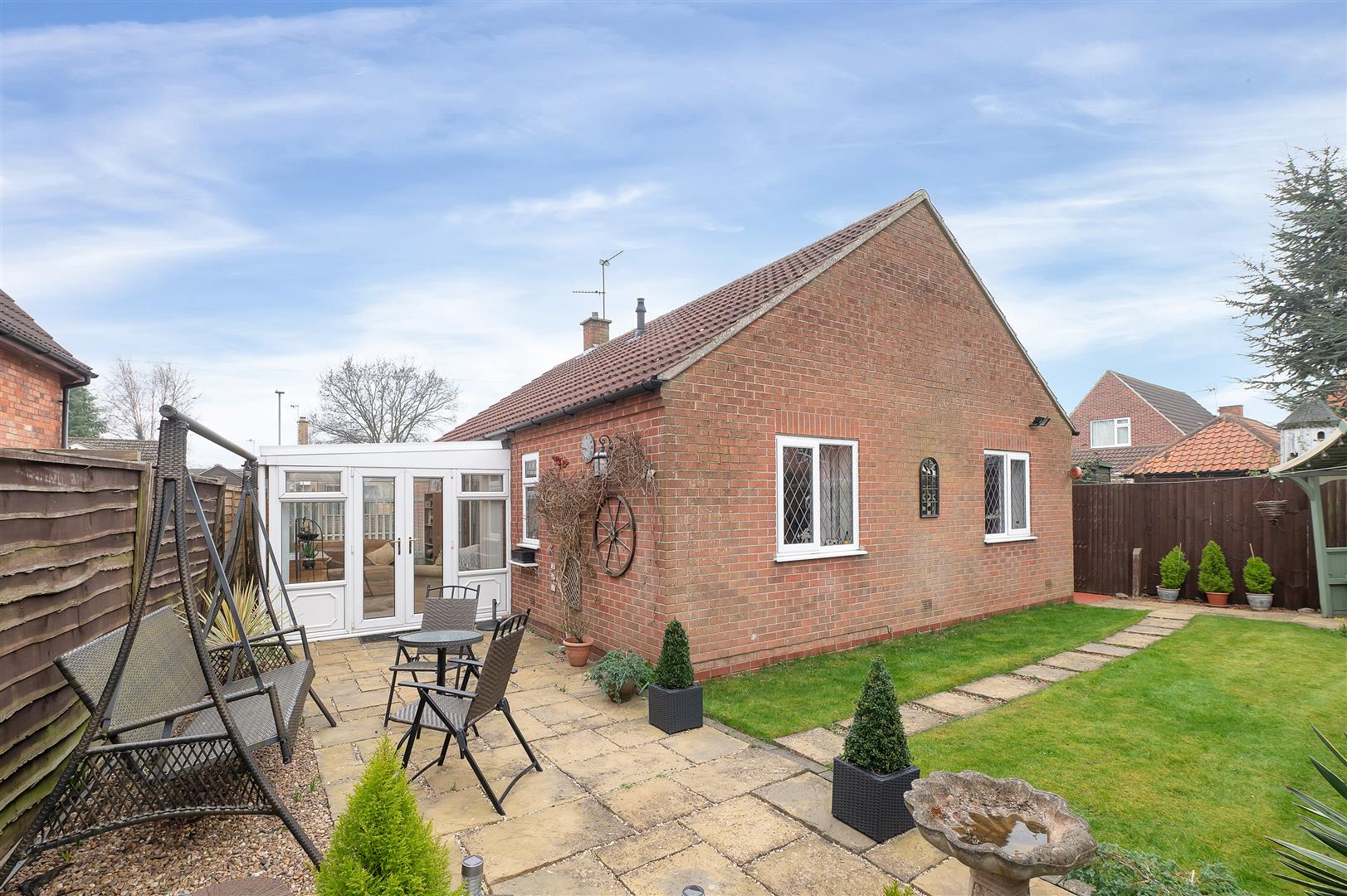 Well positioned in the charming village of Farndon, near Newark, this beautifully presented two bedroom detached bungalow on Village Way offers a perfect blend of modern living and quiet surroundings. Offering an impressive 1,076 square feet, this property features two inviting reception rooms, including a generous 23 ft lounge that serves as the heart of the home. The spacious uPVC double-glazed conservatory extension provides an ideal space for relaxation or entertaining, seamlessly connecting the indoor and outdoor areas.The bungalow boasts two well-proportioned bedrooms, ensuring ample space for family or guests. The modern kitchen is thoughtfully designed and well-appointed with integra... Read more