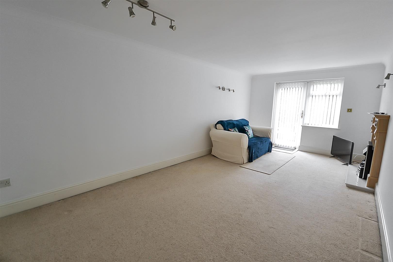 Lounge Diner - A well proportioned reception room with coved ceiling, wall light points, a Dimplex storage heater, a uPVC double glazed window and French door onto the communal rear gardens and a feature fireplace with a decorative Adam style surround housing a floor-standing electric fire.