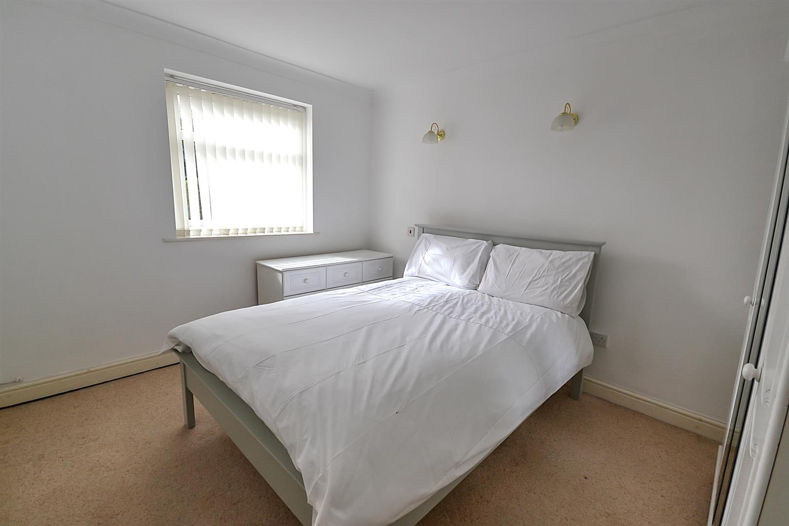 Bedroom - A double bedroom with coved ceiling, a uPVC double glazed window overlooking the communal gardens and a wall mounted electric heater.