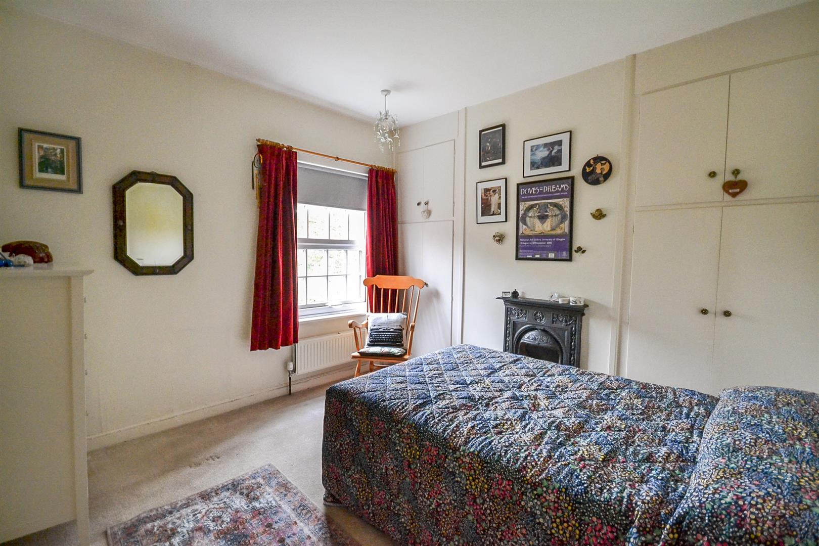 Bedroom One - A good sized double bedroom with a central heating radiator, a uPVC double glazed sash style window to the front aspect, a decorative cast iron fireplace and double wardrobes built into each of the two alcoves.