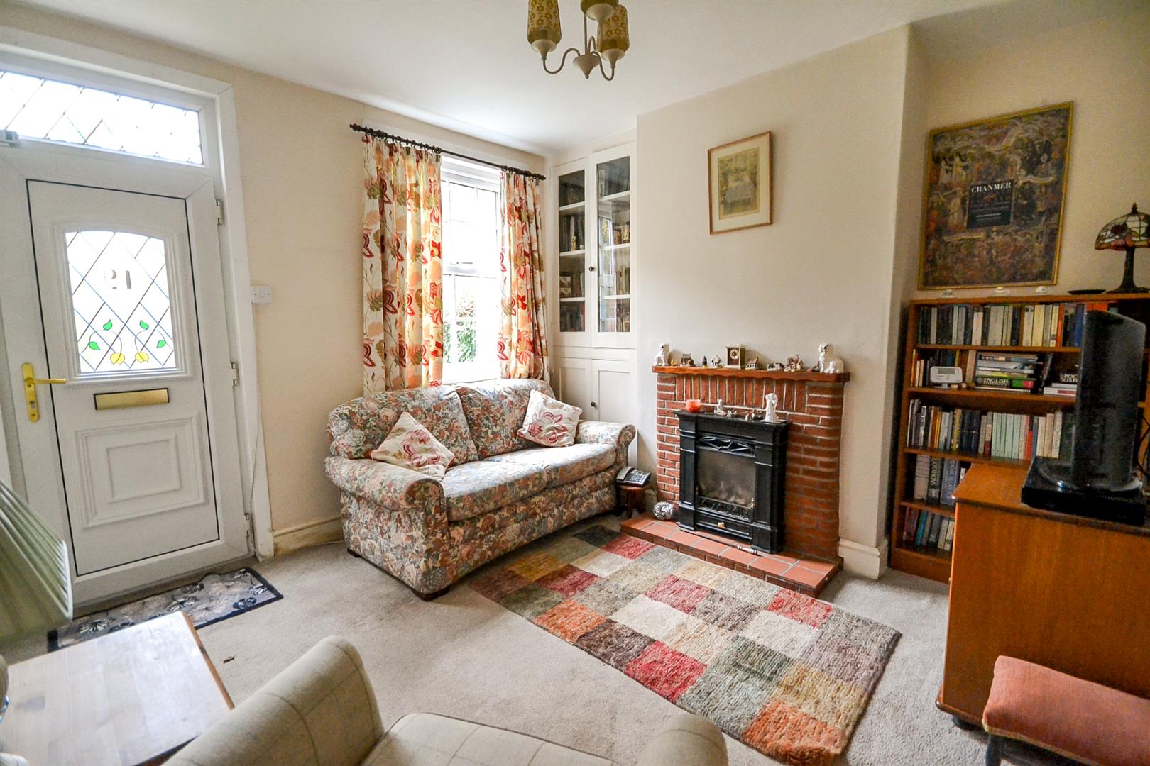 Lounge - Having a central heating radiator, a uPVC double glazed sash style window overlooking the rear gardens, a fireplace with brick surround housing a coal effect gas fire and an original cupboard built into the alcove with glass fronted display cabinet. A uPVC double glazed door leads onto the gardens.