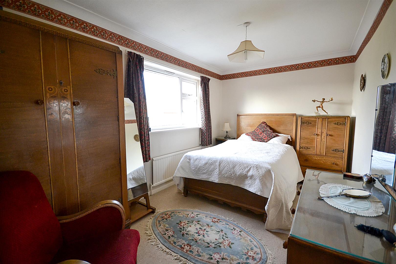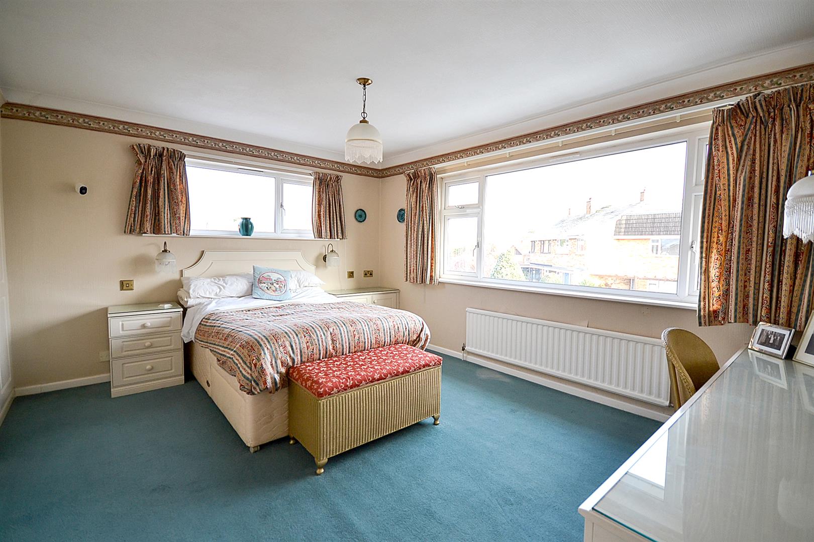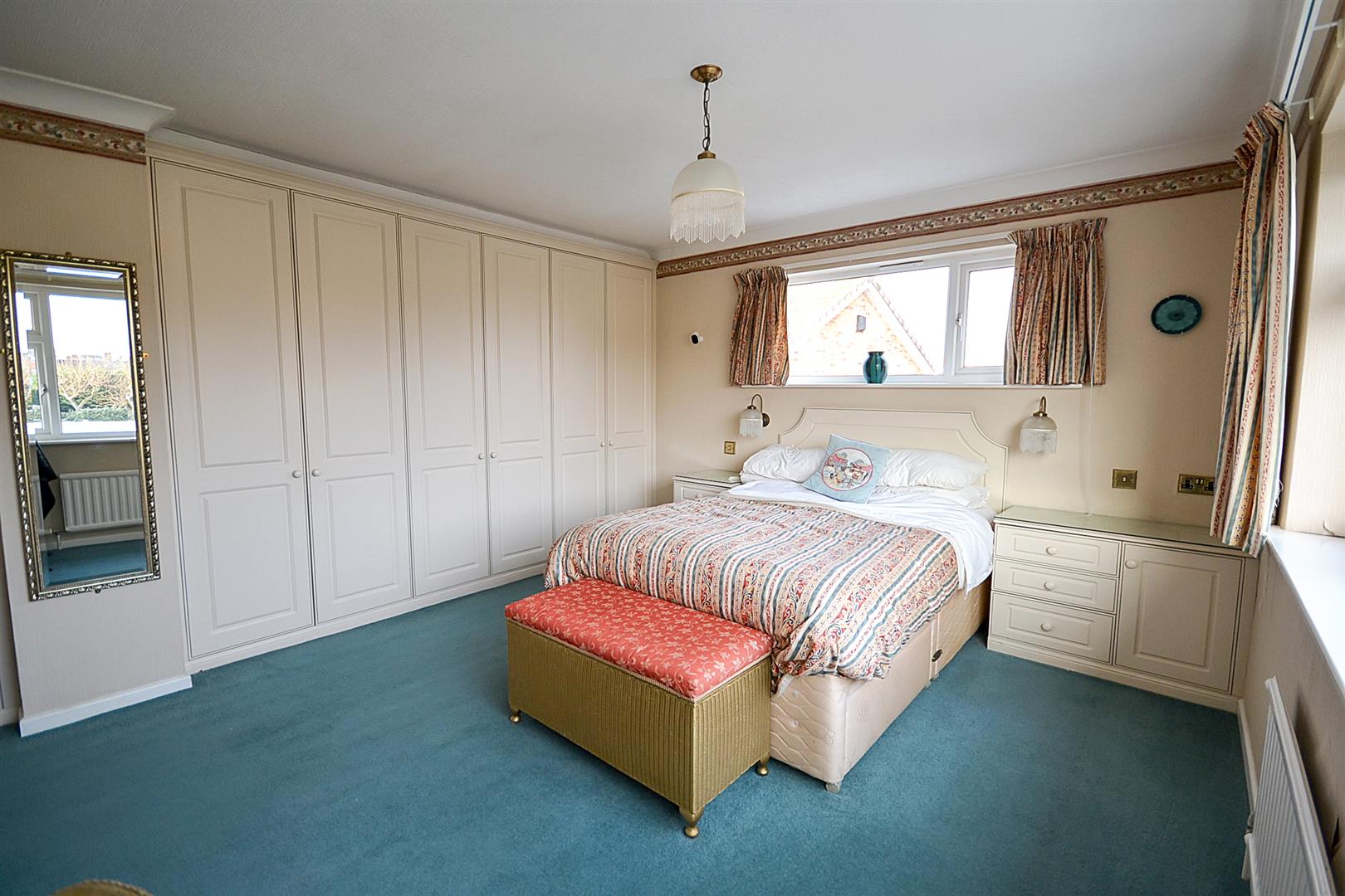 Bedroom One - A large dual aspect double bedroom with uPVC double glazed windows to the front and side elevations, a central heating radiator, coved ceiling and a comprehensive range of bedroom furniture, including fitted wardrobes with hanging rail.