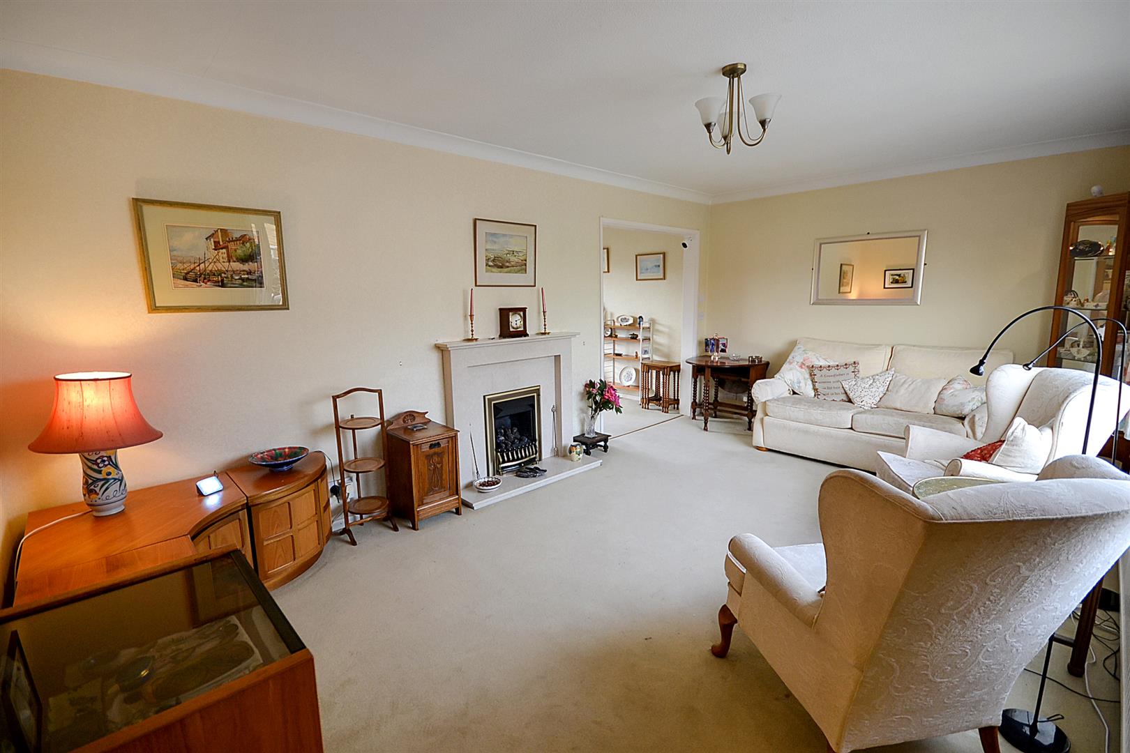 Lounge - A spacious reception room with coved ceiling, a central heating radiator, a uPVC double glazed window to the front aspect and a feature fireplace with marble surround housing a coal effect gas fire. A double doorway leads into the dining room.