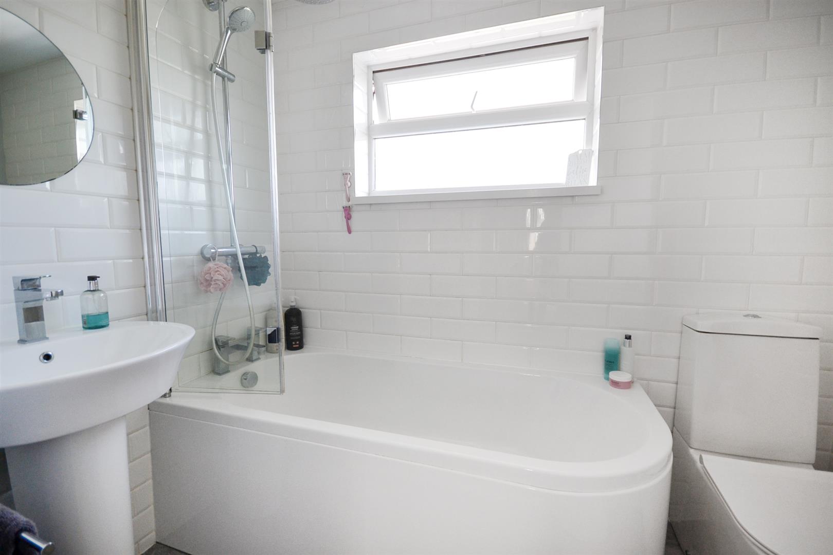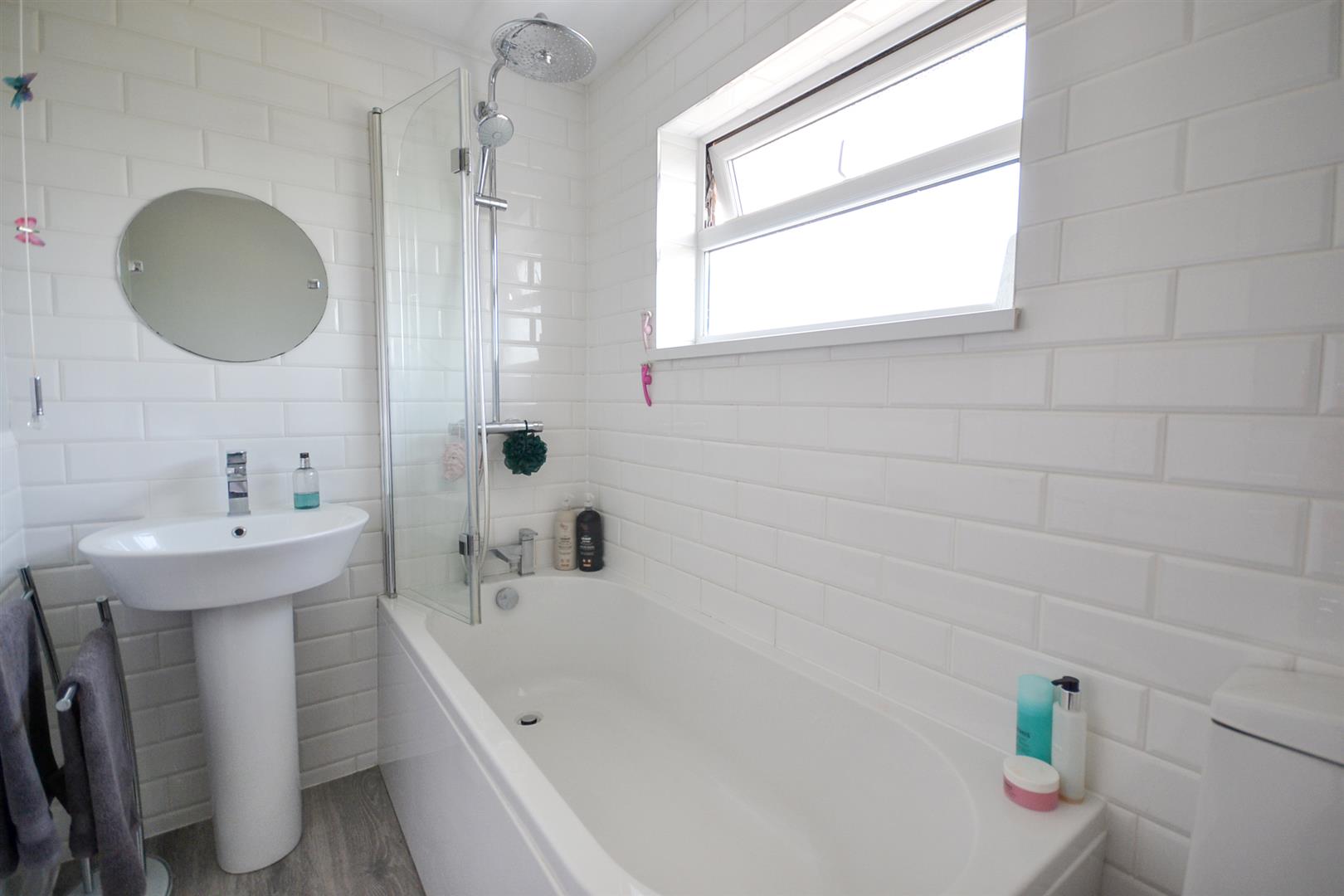 Bathroom - A superbly fitted bathroom comprising a three piece suite including a panel sided bath with mixer tap and mains fed rainfall shower with sprayhose and glazed shower screen. There is a pedestal wash basin with mixer tap, a back-to-wall toilet, feature metro tiling for splashbacks, an extractor fan to the ceiling, a chrome towel radiator and a uPVC double glazed obscured window to the rear aspect.