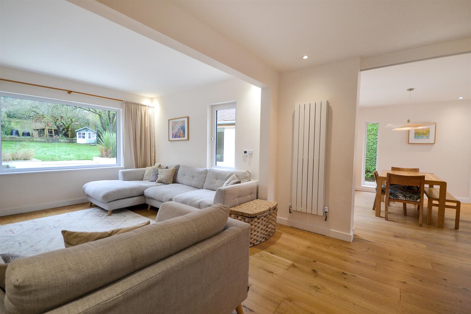Sitting Room - A fantastic reception space with oak flooring and underfloor heating, a large uPVC double glazed picture window overlooking the rear garden and a further uPVC double glazed window to the side. Spotlights to the ceiling and an oak bi-fold door into a walk-in storage room.