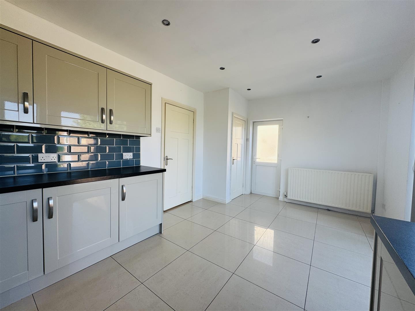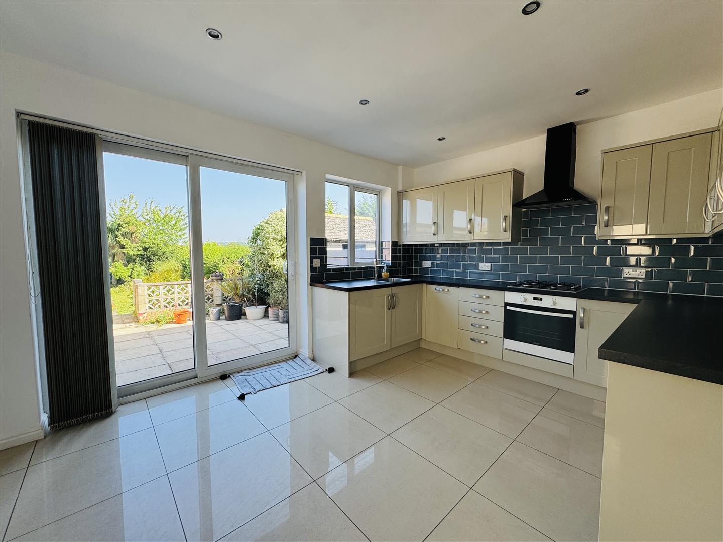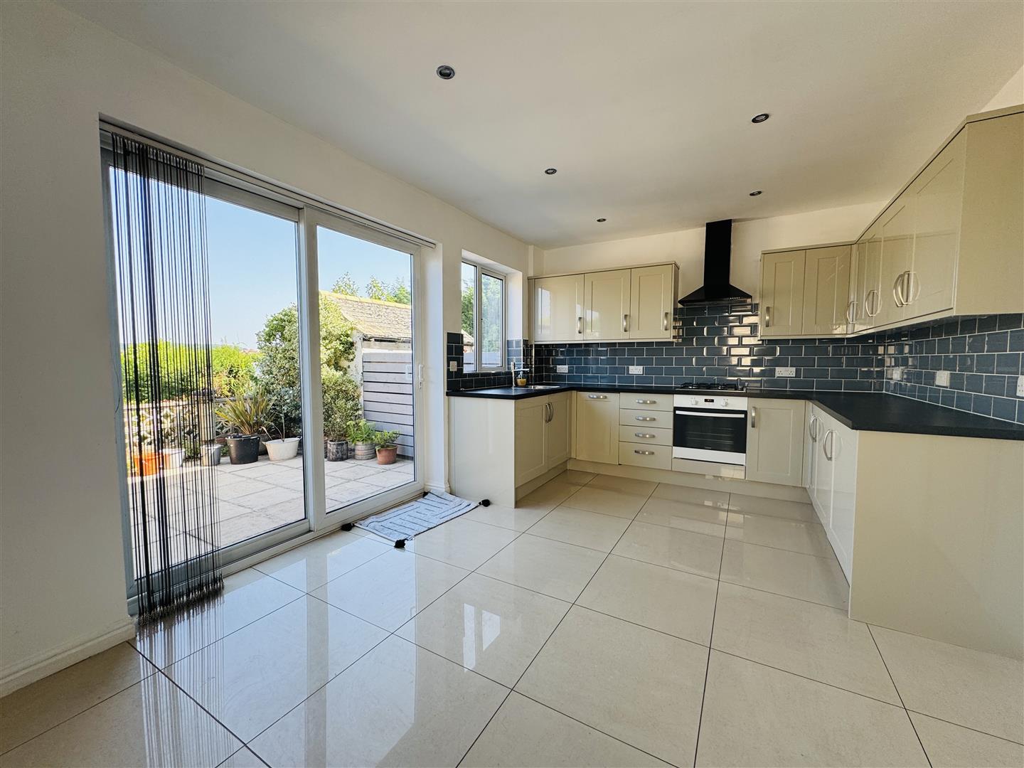 Dining Kitchen - A superbly appointed dining kitchen with tiled flooring throughout, a central heating radiator, spotlights to the ceiling, a uPVC double glazed door to the side aspect, a uPVC double glazed window to the rear and uPVC double glazed sliding patio doors leading onto the rear garden. The kitchen is fitted with a modern range of high gloss Shaker style base and wall cabinets with linear edge granite effect worktops and an inset stainless steel sink with mixer tap. There is a built-in oven by Zanussi with four ring gas hob and chimney extractor hood over plus an integrated refrigerator, integrated freezer and dishwasher then a concealed space beneath the worktop with plumbing for a washing machine.