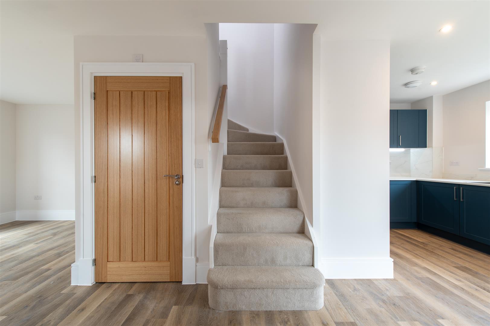 Spitfire signature staircase with oversized newels and oak handrail rising to the 1st floor