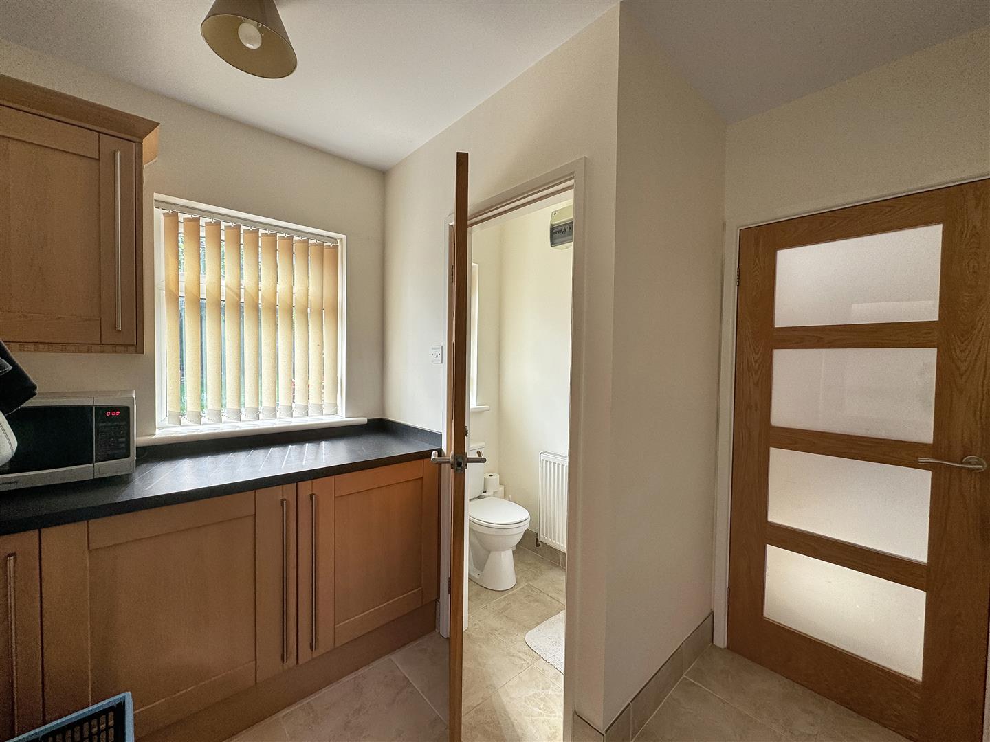 Utility Room - A useful space at the side of the property with tiled flooring, central heating radiator, a uPVC double glazed window to the rear aspect, a personal door into the garage and a uPVC double glazed door to the side. Fitted with a range of solid oak fronted base and wall cabinets with granite effect linear edge worktop and space beneath for appliances including plumbing for a washing machine.