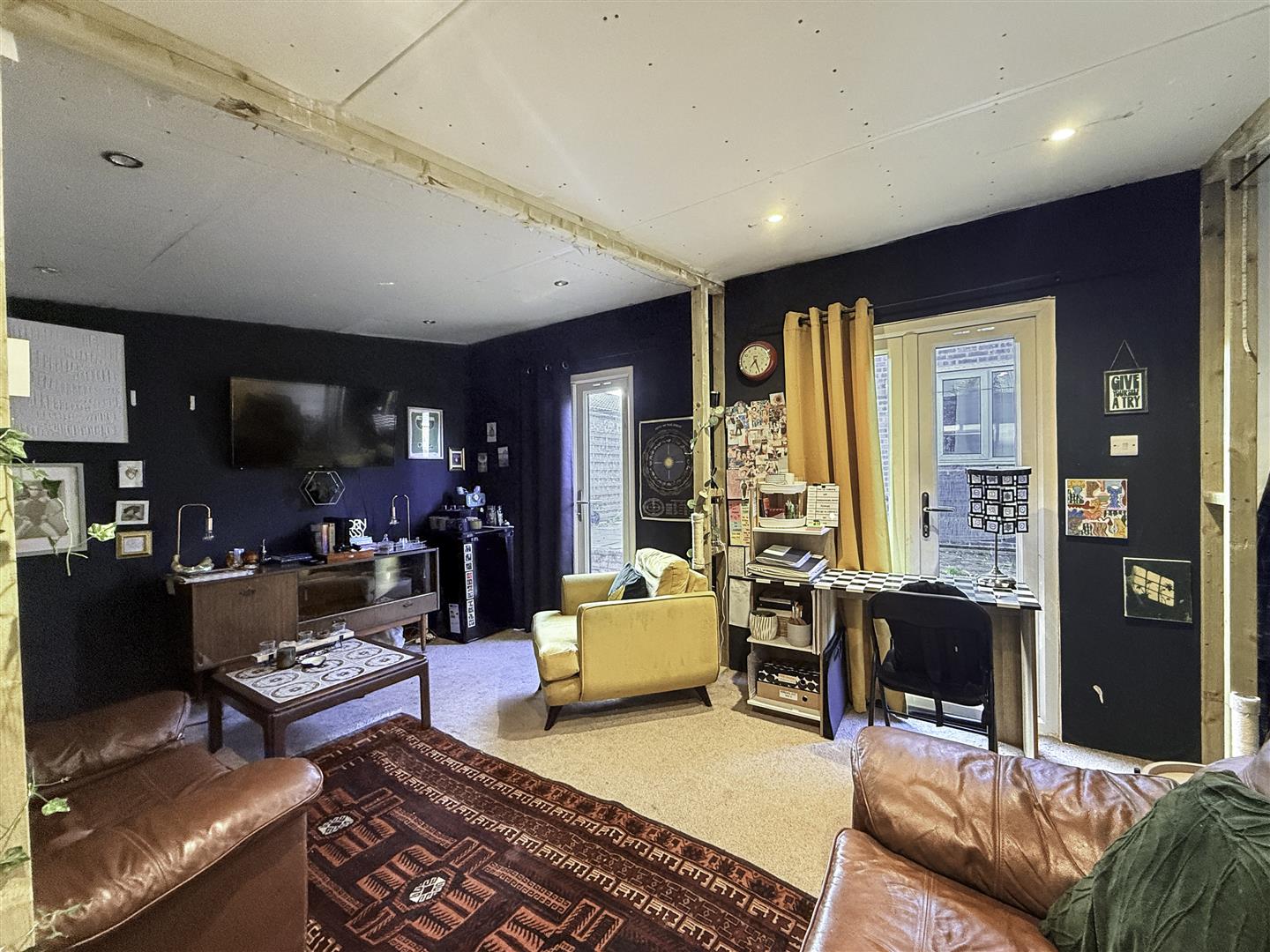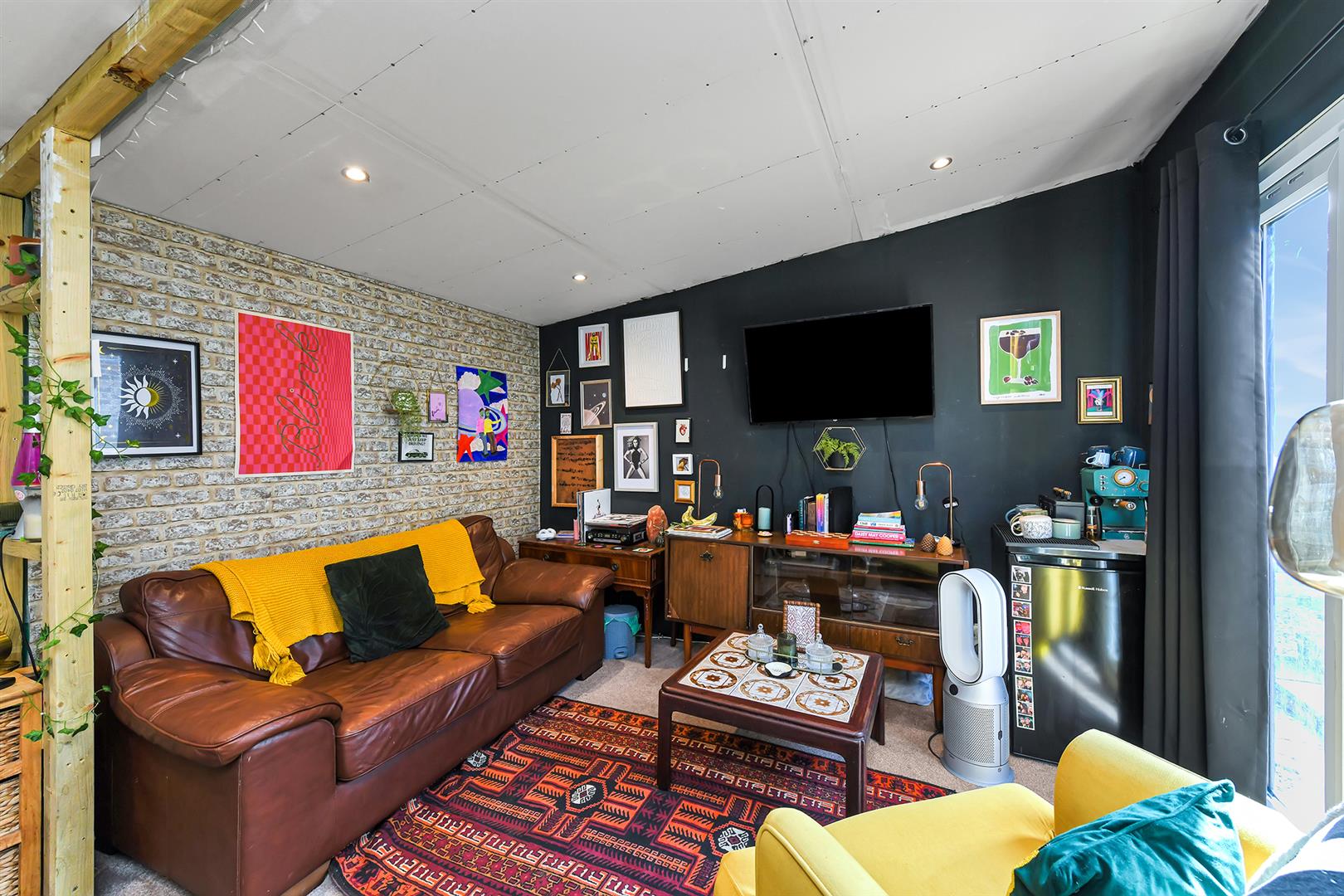 The rear garden is enclosed and includes a paved patio area for outdoor seating. Additionally, an insulated timber garden cabin (installed in 2021).