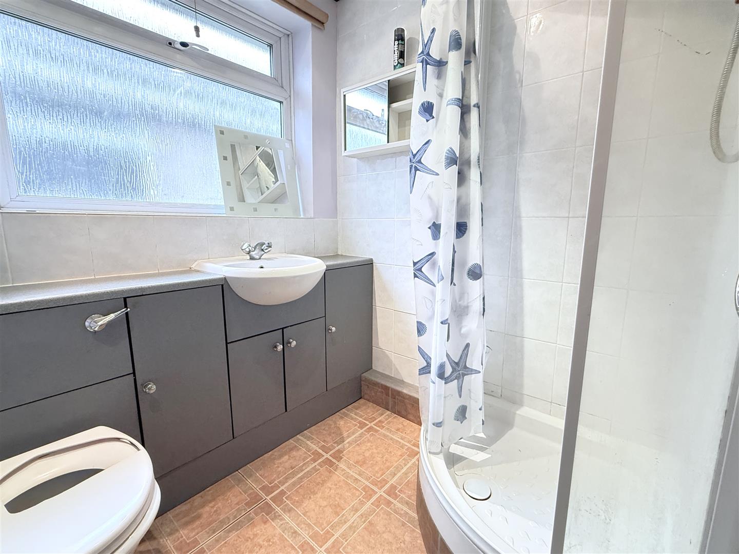 Shower Room - 1.65m x 1.78m (5'5" x 5'10") - Having a suite comprising quadrant shower enclosure with wall mounted electric shower, vanity unit with WC with concealed cistern and vanity surface over with inset washbasin and tiled splash backs, chrome towel radiator and double glazed window.