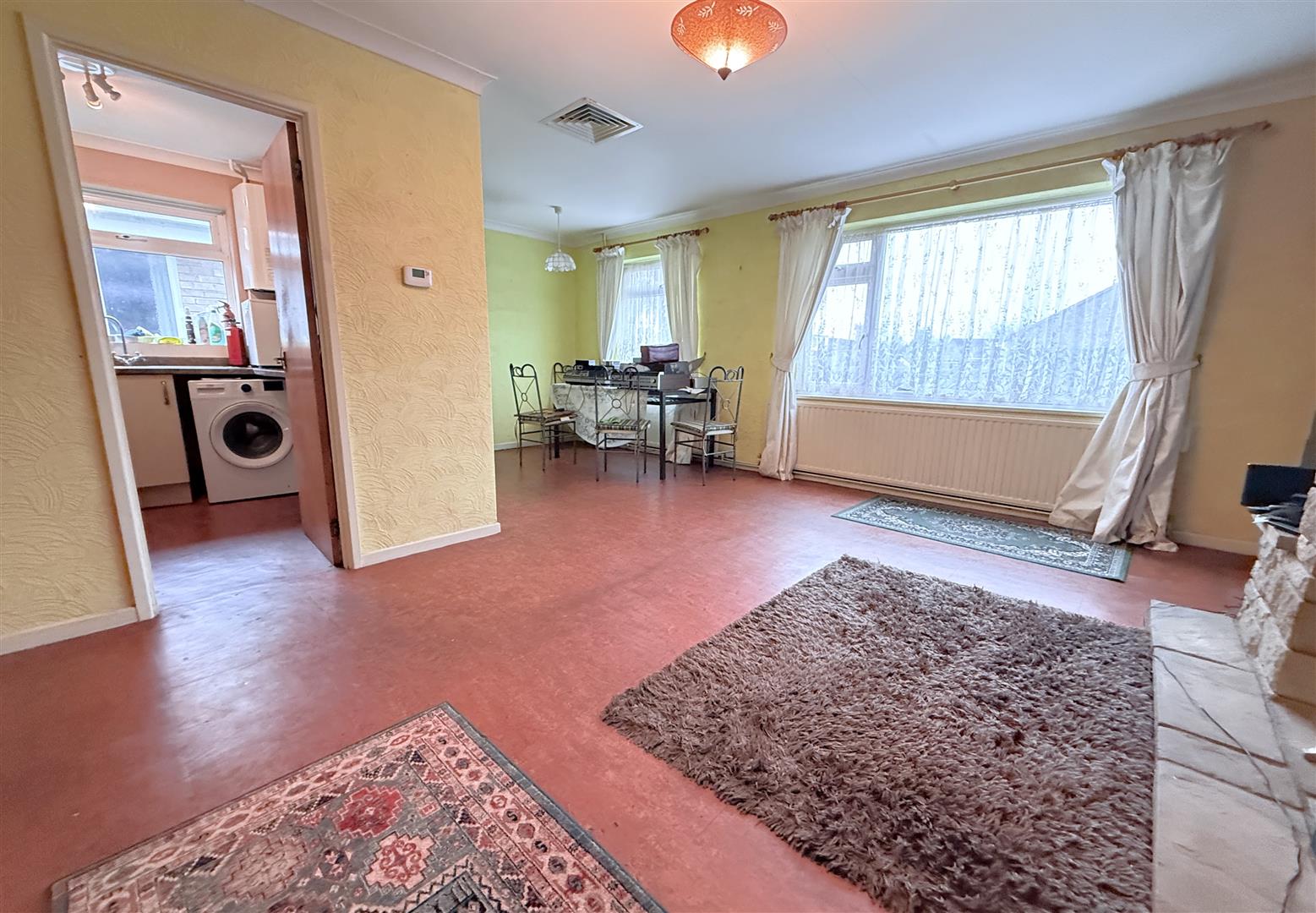 L Shaped Sitting/Dining Room - 5.94m max x 4.85m max (19'6" max x 15'11" max) - A well proportioned open plan L shaped reception large enough to accommodate both a living and dining area, the sitting room having a feature stoned faced fireplace with stone hearth and back and inset electric fire, two double glazed windows to the front and a further door leading into: