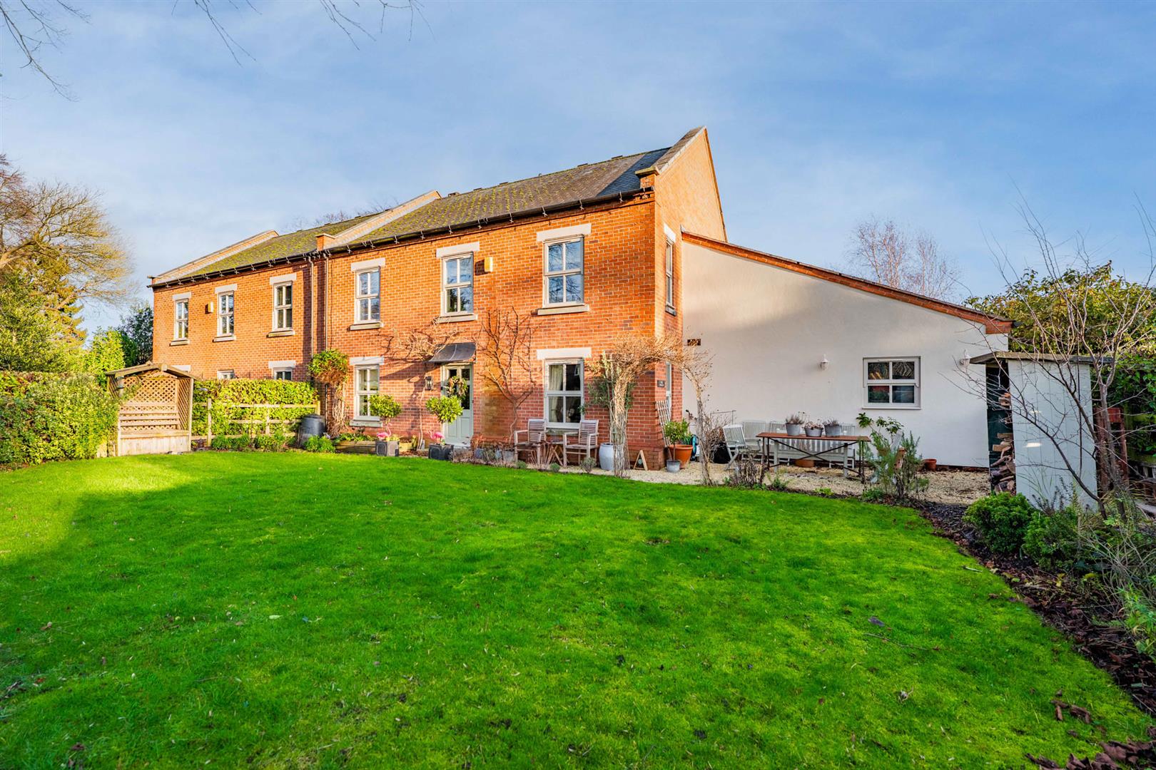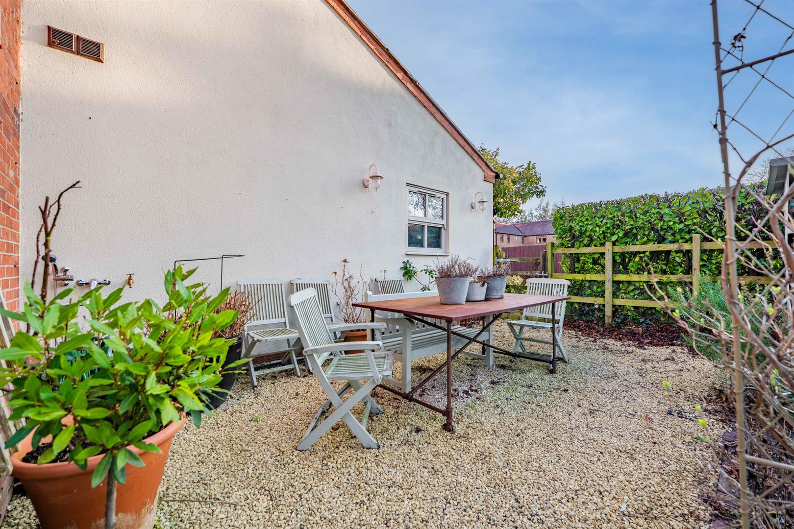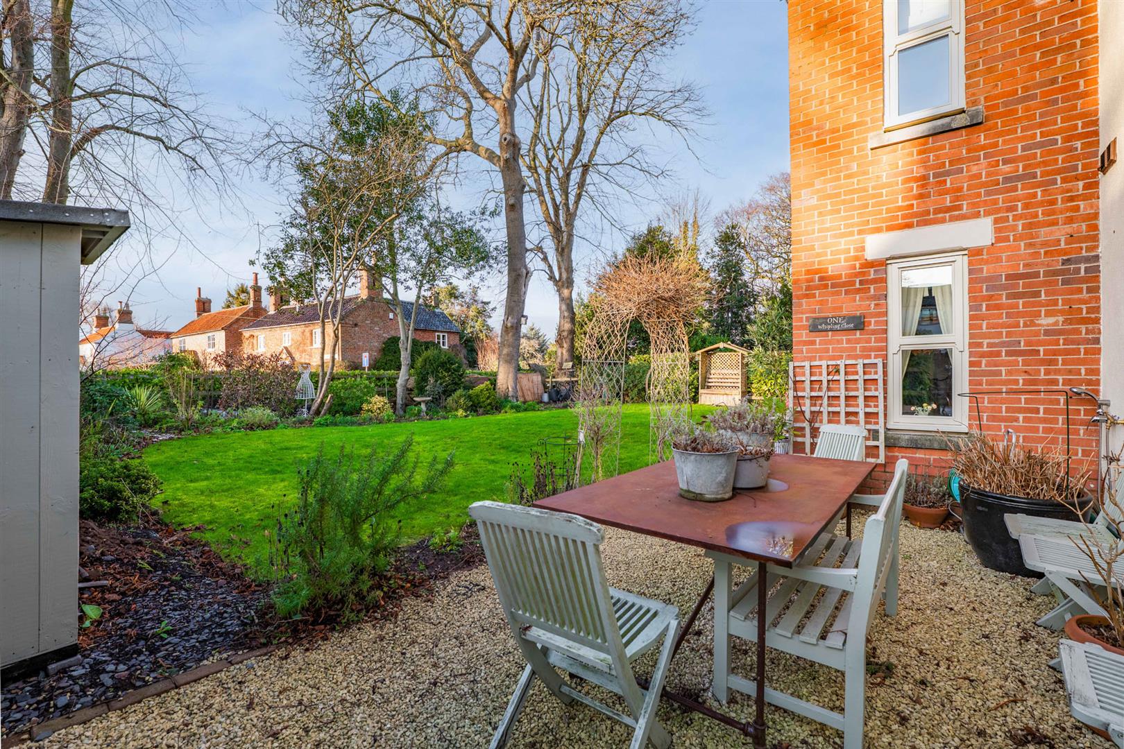 Exterior - The property occupies a delightful position at the heart of this conservation village, affording a pleasant aspect across to a central paddock and occupying a well maintained formal corner plot with gardens to three sides. The front garden is enclosed by post and rail fencing with established laurel hedging behind which lies well stocked borders with an abundance of trees and shrubs and central lawn. A courtesy gate to the side gives access into the garden and, in turn, the front door. To the rear of the property is an enclosed garden bordered by brick walls and contemporary fencing providing an enclosed secure space perfect for families or those with dogs. The garden is partly lawned but with a substantial area given over to paved and stone chipping seating areas providing a pleasant outdoor space which link back into the living area of the kitchen. To the side of the property is a double width driveway providing off road car standing for several vehicles and in turn leads to the attached double garage.