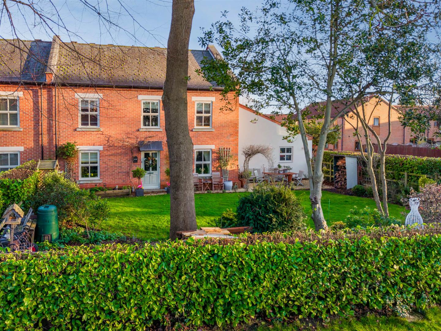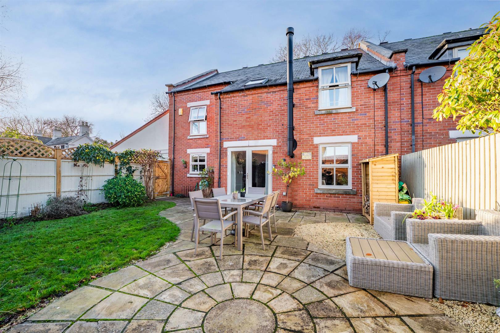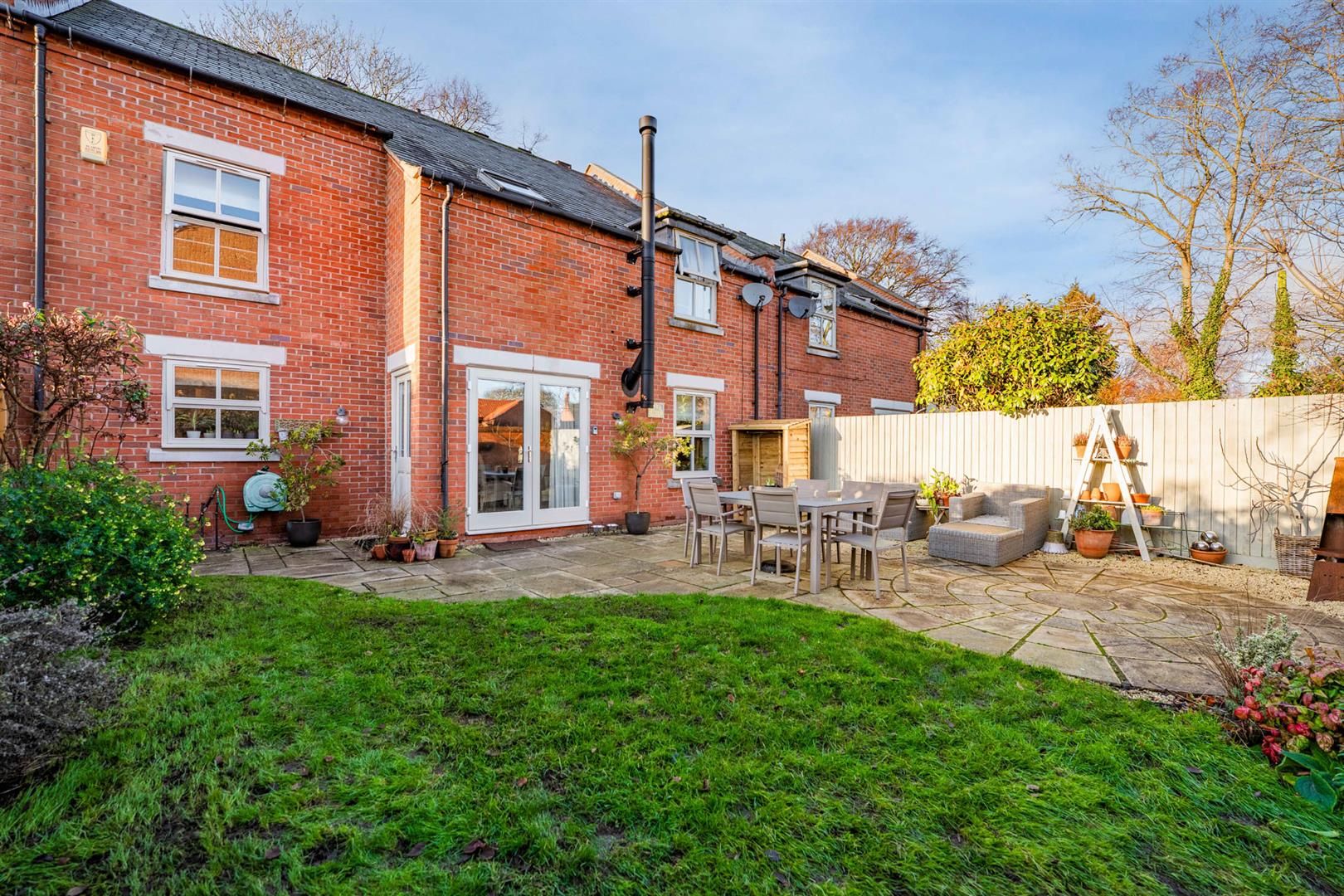Exterior - The property occupies a delightful position at the heart of this conservation village, affording a pleasant aspect across to a central paddock and occupying a well maintained formal corner plot with gardens to three sides. The front garden is enclosed by post and rail fencing with established laurel hedging behind which lies well stocked borders with an abundance of trees and shrubs and central lawn. A courtesy gate to the side gives access into the garden and, in turn, the front door. To the rear of the property is an enclosed garden bordered by brick walls and contemporary fencing providing an enclosed secure space perfect for families or those with dogs. The garden is partly lawned but with a substantial area given over to paved and stone chipping seating areas providing a pleasant outdoor space which link back into the living area of the kitchen. To the side of the property is a double width driveway providing off road car standing for several vehicles and in turn leads to the attached double garage.