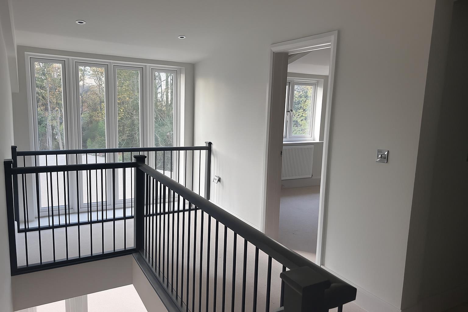 First Floor Landing - 5.38m x 2.44m (17'8" x 8') - Having attractive pitched ceiling, full height double glazed window to the front and further doors leading to: