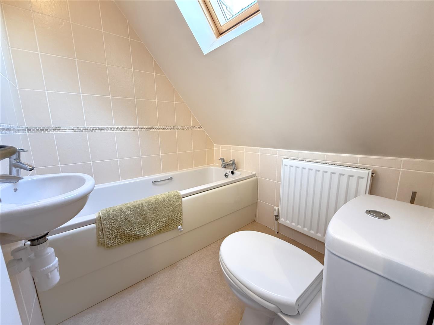 Ensuite Bathroom - 1.88m x 1.65m (6'2 x 5'5) - Having panelled bath, close coupled wc, wall mounted wash basin, central heating radiator and Velux skylight.