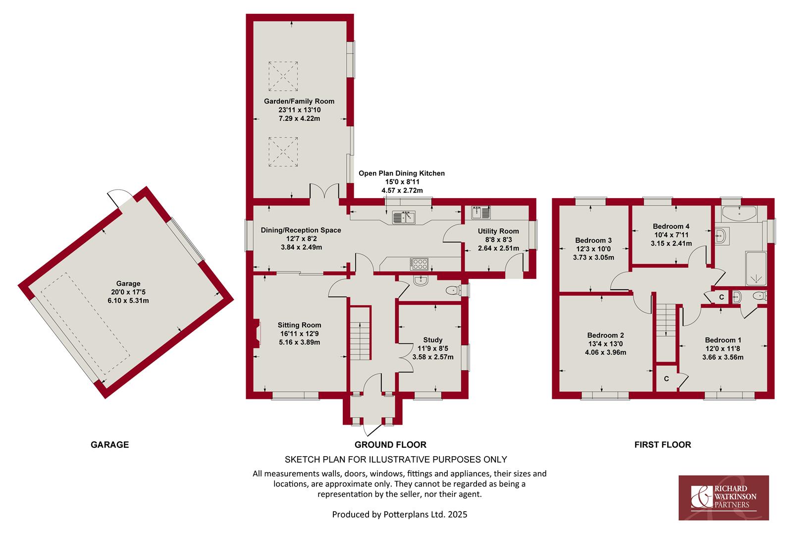 Garage - 6.10m max in length x 5.31m max (20' max in length - A particularly generous garage, having power and light, electric up and over door, potential storage in the eaves, window and courtesy door.