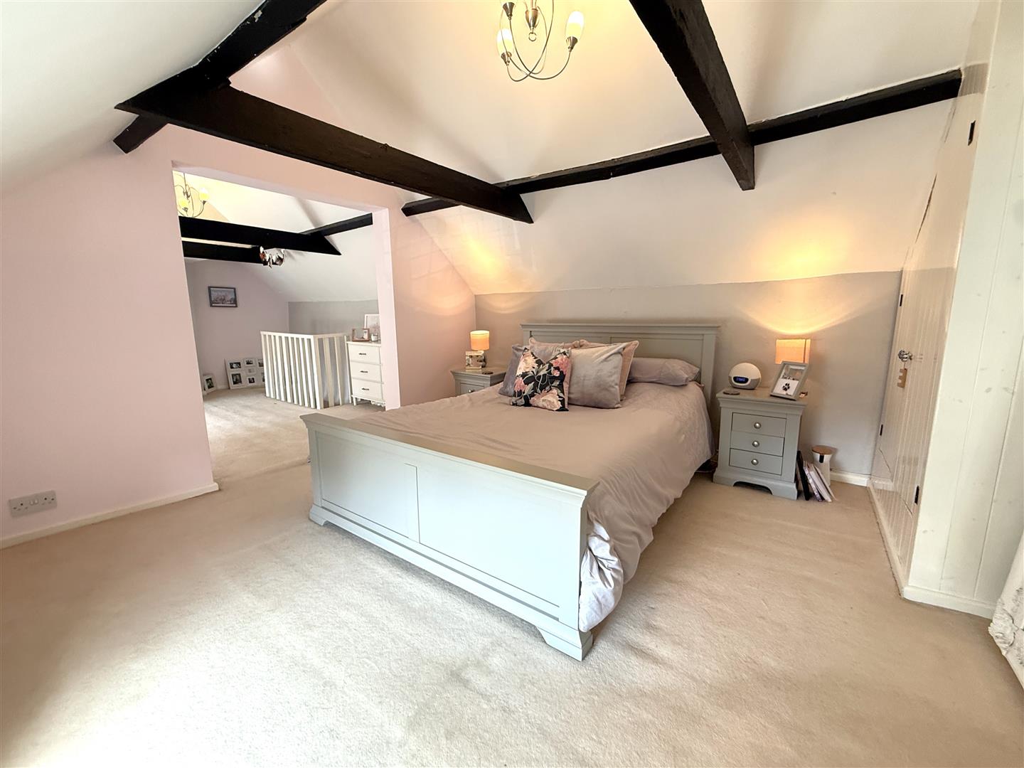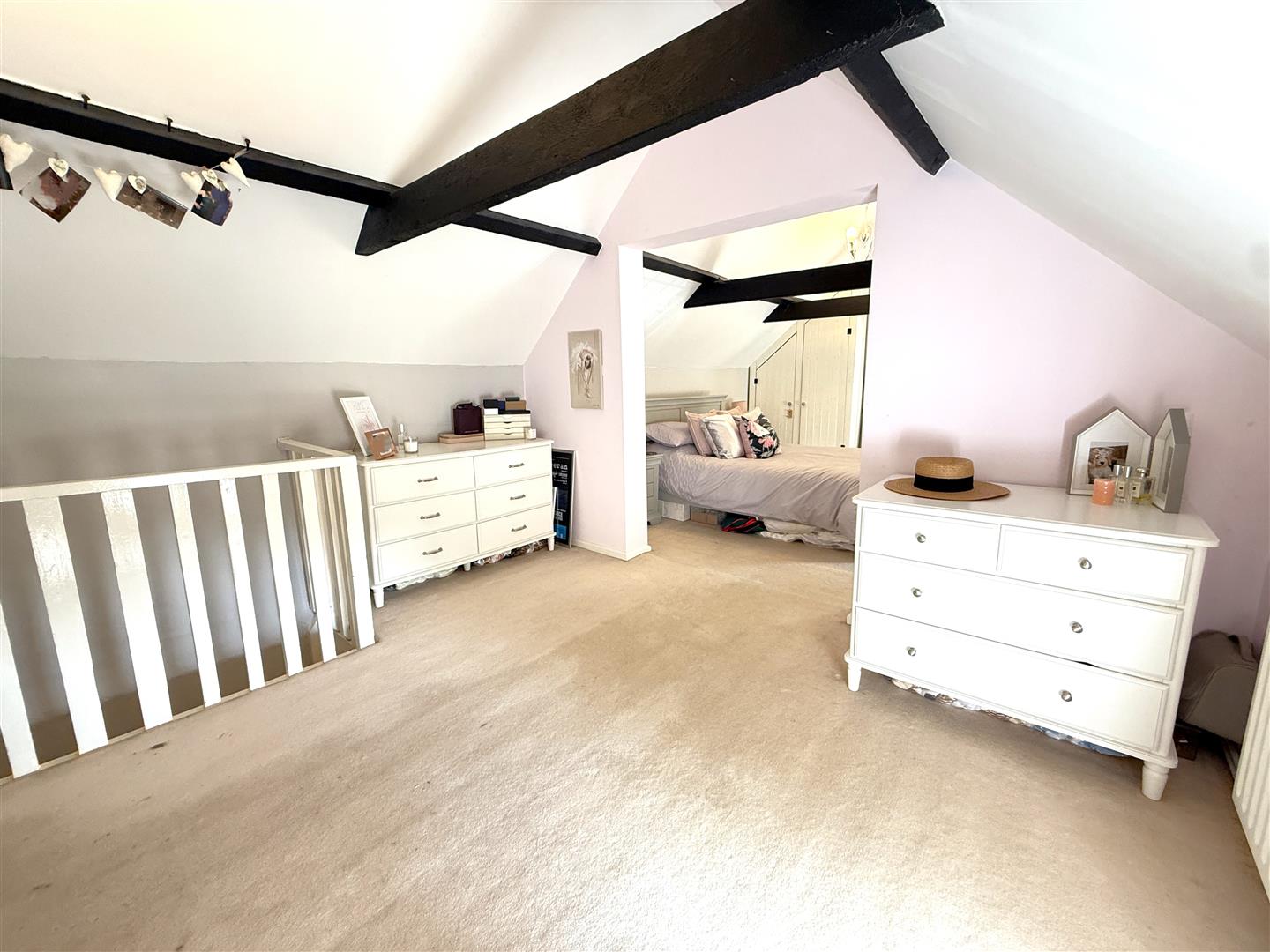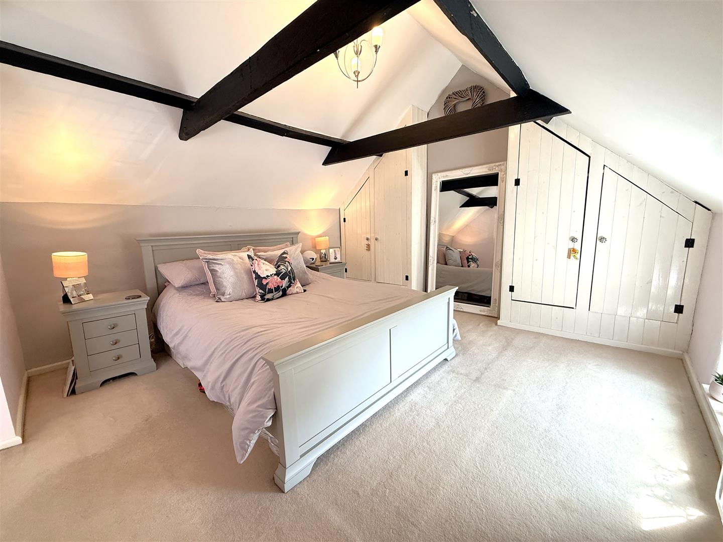 Main Bedroom - 3.66m x 3.73m to eaves (12' x 12'3" to eaves) - A well proportioned double bedroom again having an attractive pitched ceiling with exposed timbers, chimney breast with built in wardrobes to either side and double glazed window to the front.