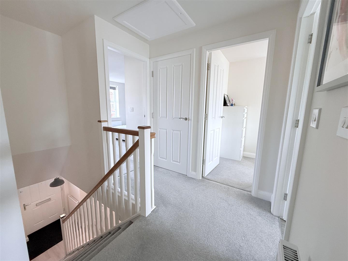 First Floor Landing - Having built in storage cupboard, access to loft space above, central heating radiator and, in turn, further doors leading to: