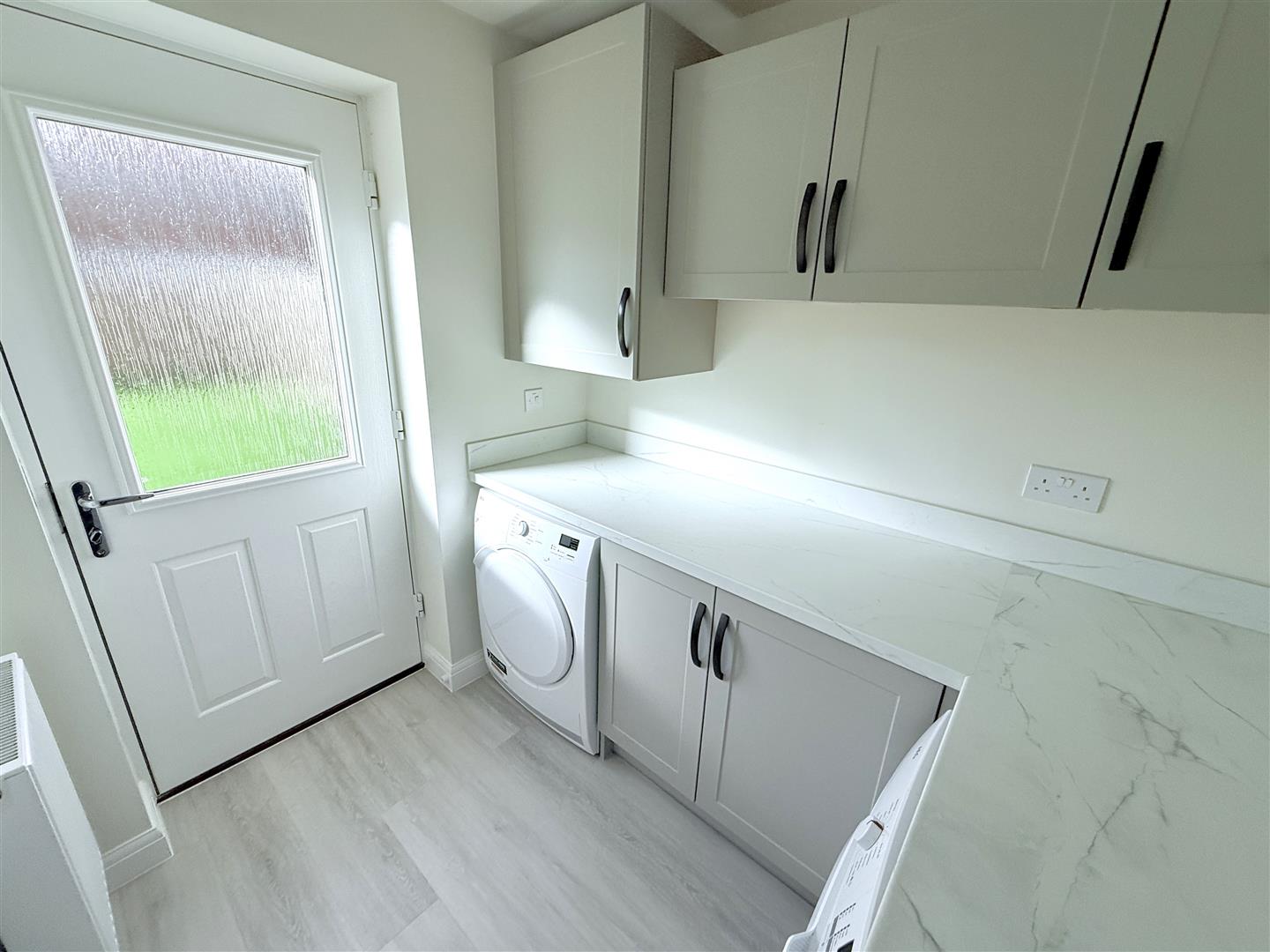 Utility Room - 2.18m x 1.83m (7'2" x 6') - A useful space providing a good level of storage with fitted wall and base units, L shaped configuration of laminate preparation surface, space and plumbing for washing and tumble dryer, wall mounted gas central heating boiler concealed behind kitchen cupboard, central heating radiator and double glazed exterior door into the rear garden.