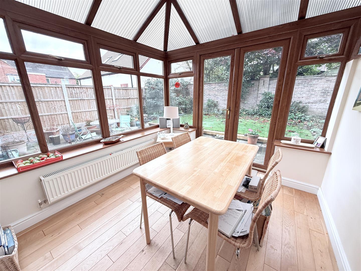 Conservatory - 3.00m x 2.57m (9'10" x 8'5") - A useful, versatile, reception space currently utilised as dining having continuation of the wood flooring, central heating radiator, pitched polycarbonate roof, double glazed windows and French doors into the garden.