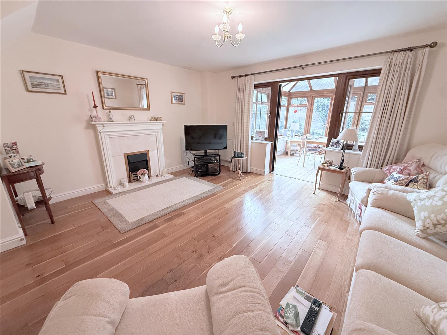 Sitting Room - 4.55m x 4.85m (14'11" x 15'11") - A well proportioned reception which links through into the conservatory making an excellent everyday living/entertaining space, having feature fire surround and mantel with inset electric fire, continuation of the wood flooring and double glazed French doors leading through into: