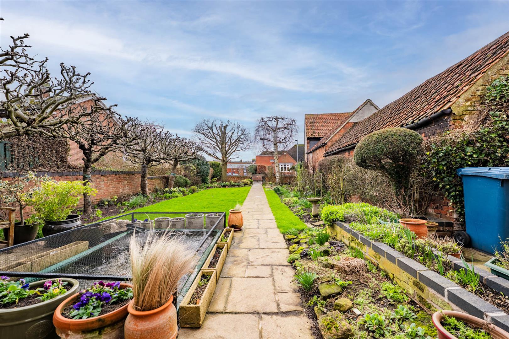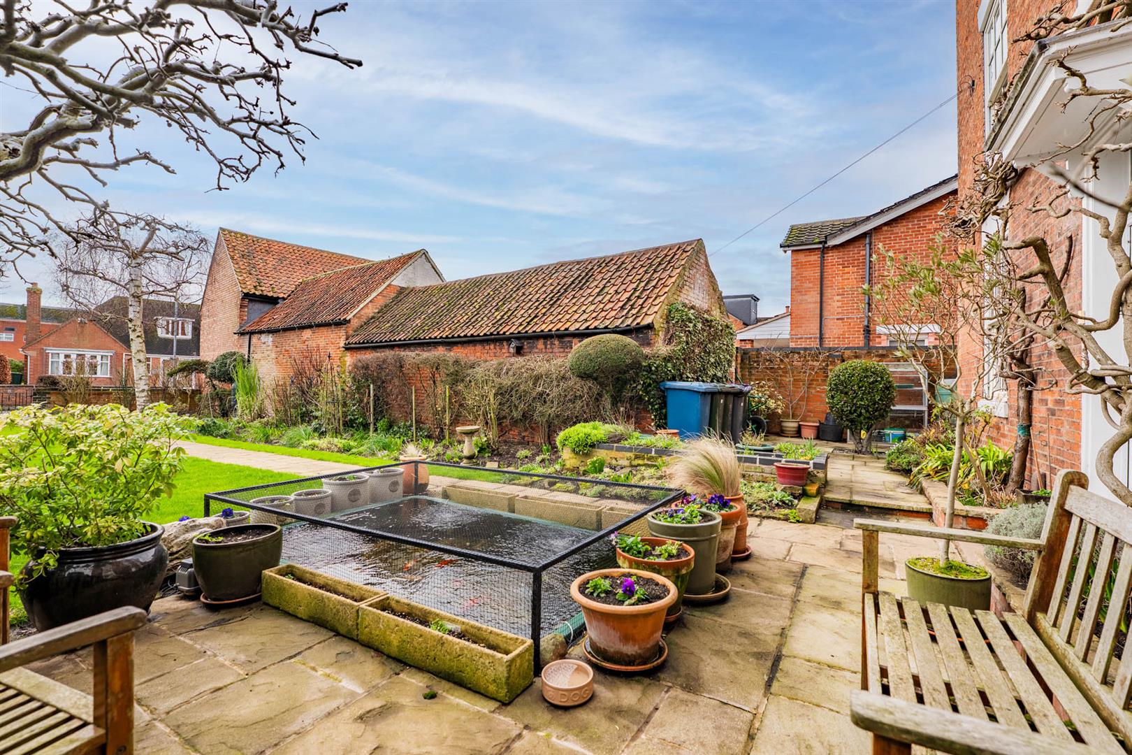 Exterior - The property occupies a fantastic central town location, set back behind a walled frontage with central wrought iron pedestrian gate leading onto a flagged pathway which bisects the front garden and leads to the handsome double fronted facade of the house. The front garden is a generous size, benefits from a southerly aspect and is well stocked with an abundance of mature trees and shrubs, having perimeter borders, further paved seating areas and an ornamental pond. To the westerly side of the property is a lean to greenhouse which would make an ideal potting shed or additional storage space. To the easterly side of the property a door gives access into a useful small brick store/workshop and, in turn, an enclosed rear courtyard style garden which has been landscaped for relatively low maintenance living, having a large paved terrace and an enclosed "soft fruit cage" and is bordered by brick walls, providing a secure outdoor space. At the foot of the rear garden is a brick and pantiled outbuilding. Accessed off Moor Lane a shared driveway leads, in turn, to the brick outbuilding of the property with a central electric roller door leading to a covered car port providing off road car standing with additional potential parking in the courtyard area.