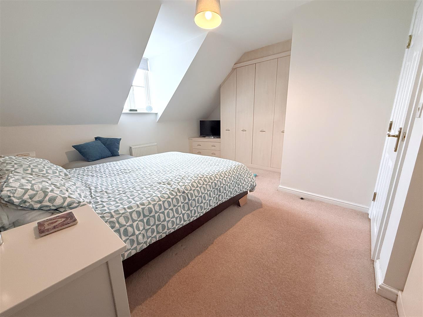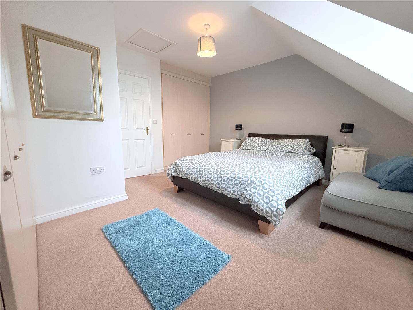 Principle Bedroom - 3.91m (excluding wardrobes) x 4.65m max (12'10" (e - A well proportioned double bedroom having far reaching panoramic views to the front, the room benefitting from integrated furniture with full height wardrobes and low level drawer unit; access to loft space above and double glazed dormer window.