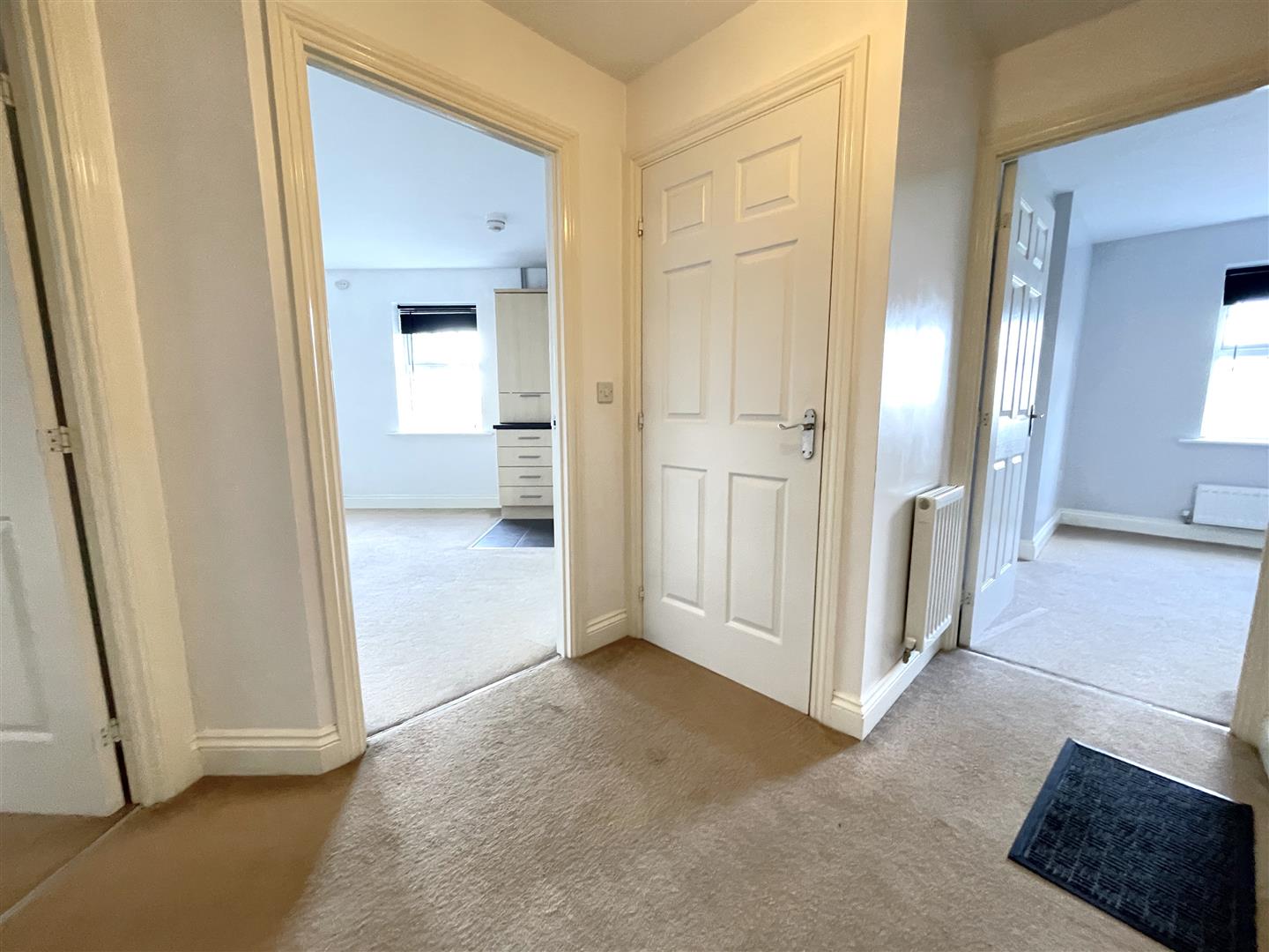 Initial Entrance Hall - 3.35m max x 2.26m max (11'0 max x 7'5 max) - The hallway offers a good level of storage, with large built-in cupboard which also houses the electrical consumer unit, central heating radiator, wall-mounted intercom for secure access.