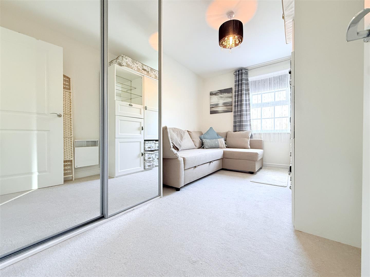 Bedroom 2 - 3.91m x 2.49m (12'10" x 8'2") - A further double bedroom benefitting from integrated storage, having full height built in wardrobe with mirrored door fronts, electric heater and double glazed window.