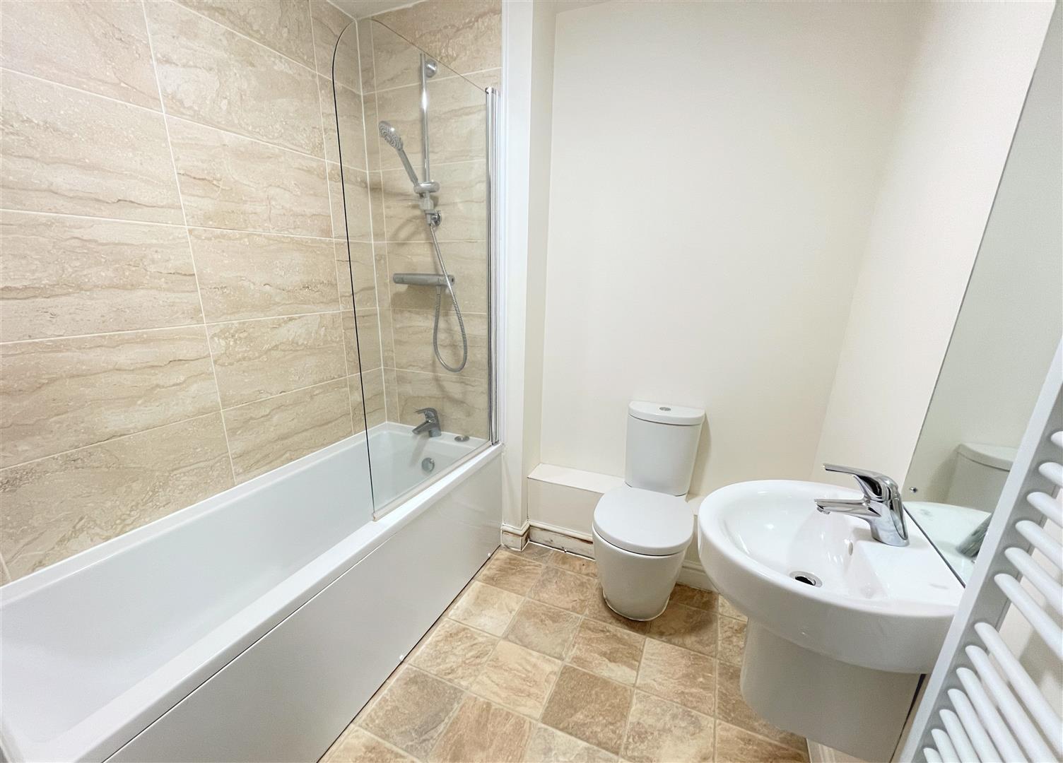 Bathroom - 2.01m x 1.93m (6'7 x 6'4) - Having panelled bath with shower mixer over and glass screen, close coupled wc, wash basin with mirrored splashback, electric towel radiator, ceiling light point and extractor.