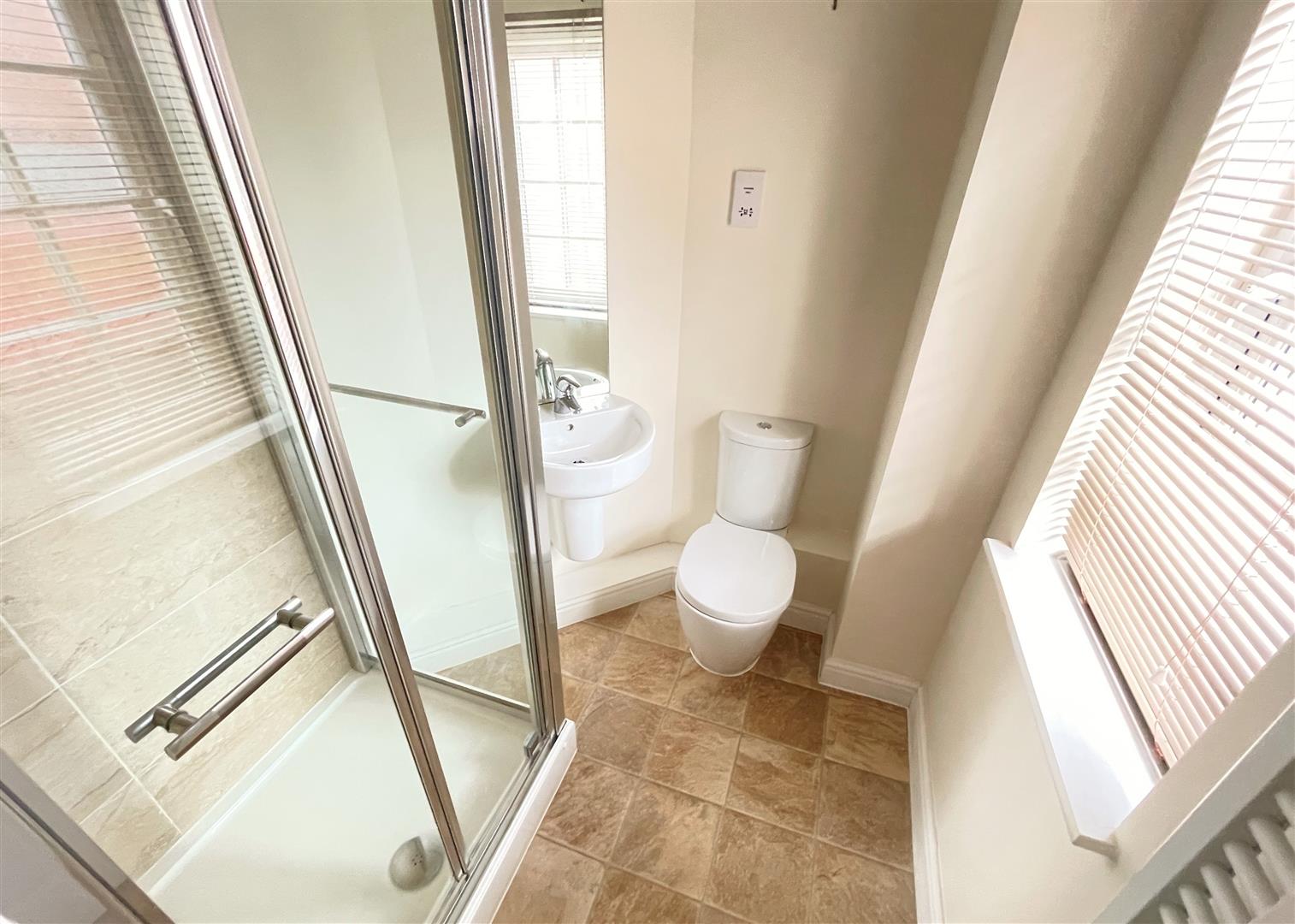 Ensuite Shower Room - 2.26m x 1.73m (7'5 x 5'8) - Having shower enclosure with bi-fold door and wall mounted shower mixer, close coupled wc, wash basin with mirrored splashback, electric towel radiator, wall mounted shaver point, UPVC obscure double glazed window.