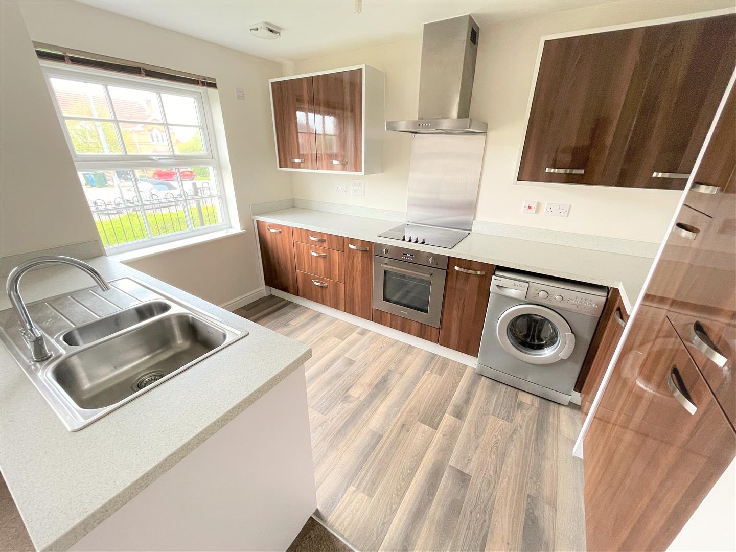 The kitchen is well appointed with a generous range of contemporary wall, base and drawer units, square edged preparation surfaces, peninsula unit with square bowl sink and drainer unit. Integrated appliances include four ring ceramic hob with stainless steel splash back and stainless steel hood over, single oven beneath, plumbing for washing machine, integrated fridge and freezer and UPVC double glazed window. The sitting room has two UPVC double glazed windows, electric heater, deep skirting.