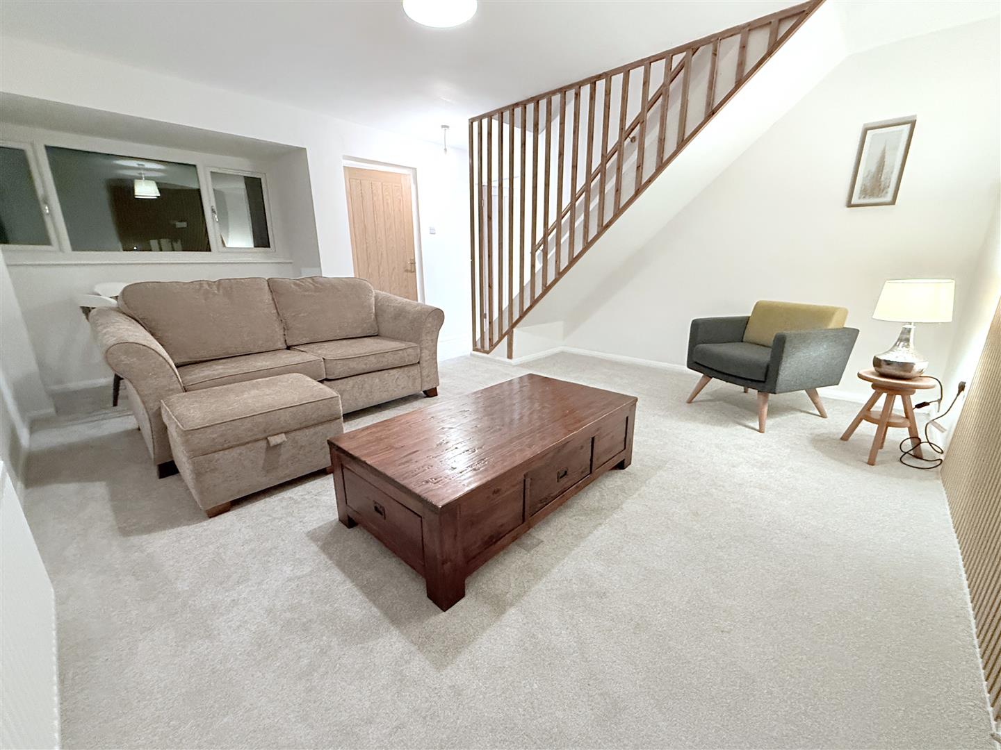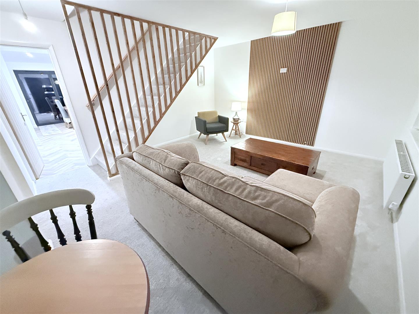 Reception - 4.72m (5.23m max into bay) x 4.32m (15'6 (17'2 max - A well proportioned reception which benefits from a south to westerly aspect, with double glazed windows to two elevations including walk-in bay to the front. Contemporary panelled wall, central heating radiator, spindle staircase rising to the first floor landing.