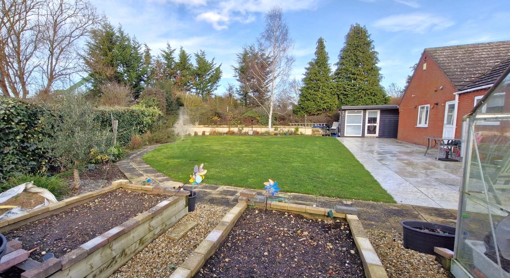 Exterior - The property occupies a pleasant, relatively generous, established corner plot located close to the entrance to this small close, having a frontage which has been landscaped to provide relatively low maintenance living and a good level of off road parking with two driveways and attached brick built garage. The rear garden has been well maintained and provides a level outdoor space linking back into the living area of the kitchen. A substantial paved terrace leads out onto a central lawn with well stocked perimeter borders and a vegetable garden which benefits from a westerly aspect. Also situated within the garden is a useful timber cabin/studio which provides an excellent outdoor reception space perfect as a home office or simply a recreational outdoor room ideal for relaxing, particularly in the summer months.