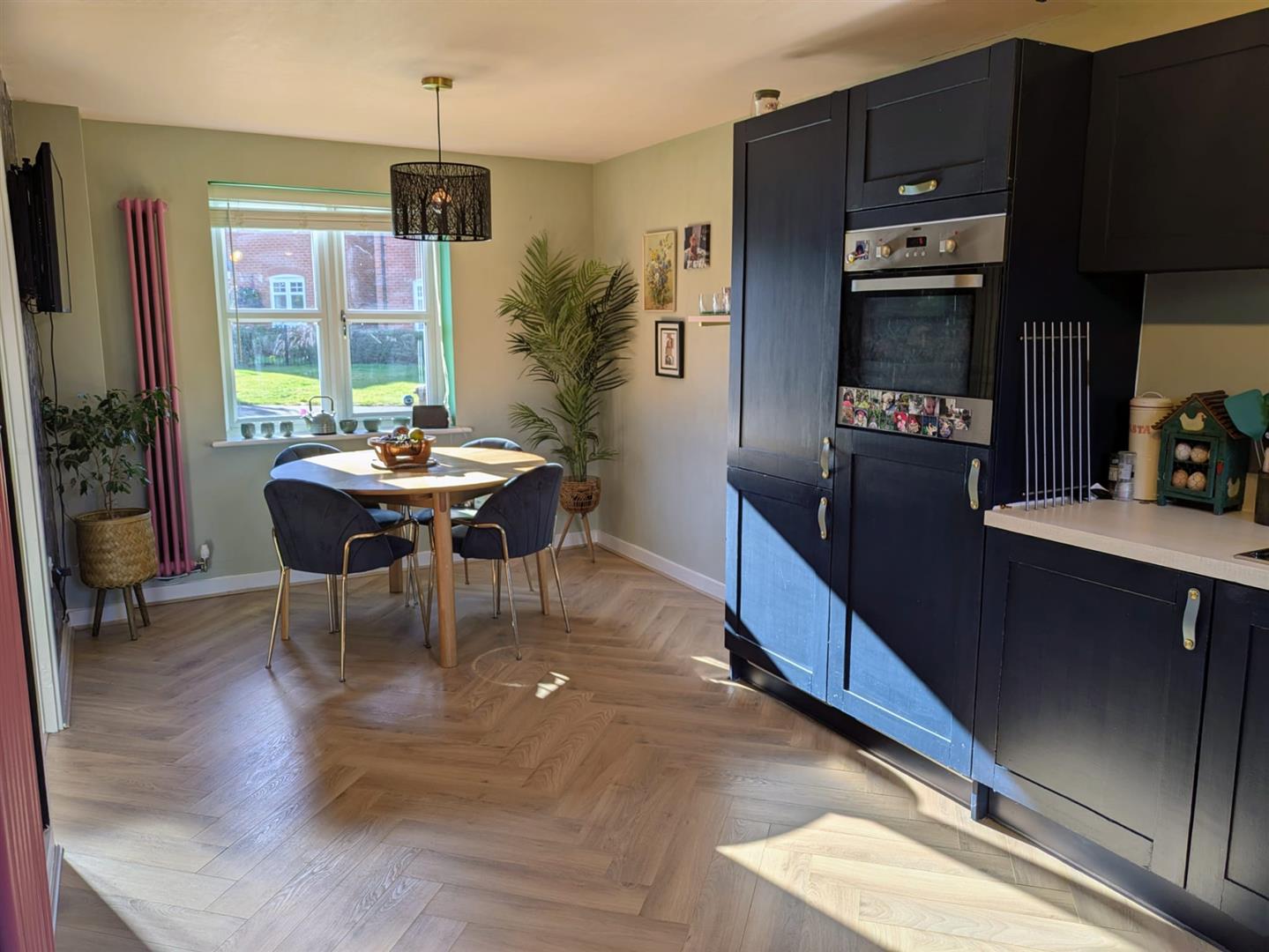 Dining Kitchen - 5.92m x 2.82m (19'5" x 9'3") - A well proportioned space which is large enough to accommodate both a living and dining area, benefitting from a dual aspect with a double glazed window to the front and a further window overlooking the rear garden. The kitchen is appointed with a range of wall, base and drawer units, having an L shaped configuration of preparation surfaces, inset sink unit with articulated mixer tap, integrated appliances including Zanussi four ring gas hob with stainless steel splash back and chimney hood over, fan assisted oven, fridge, freezer and dishwasher, attractive parquet effect flooring, traditional style column radiators and further door leading through into: