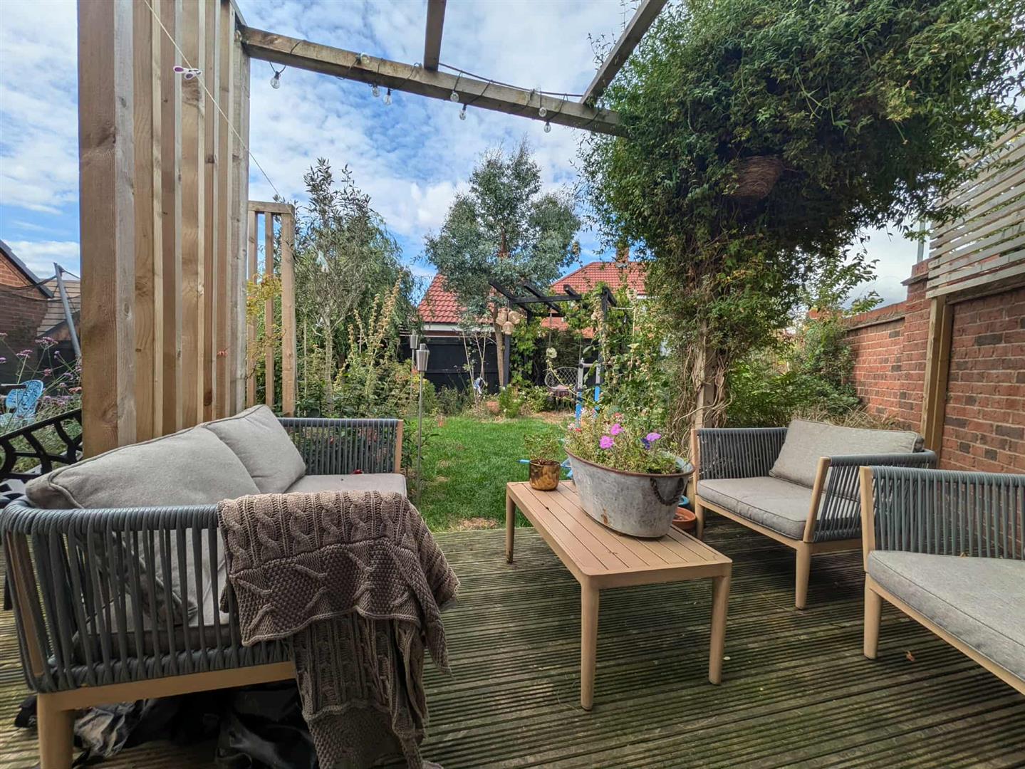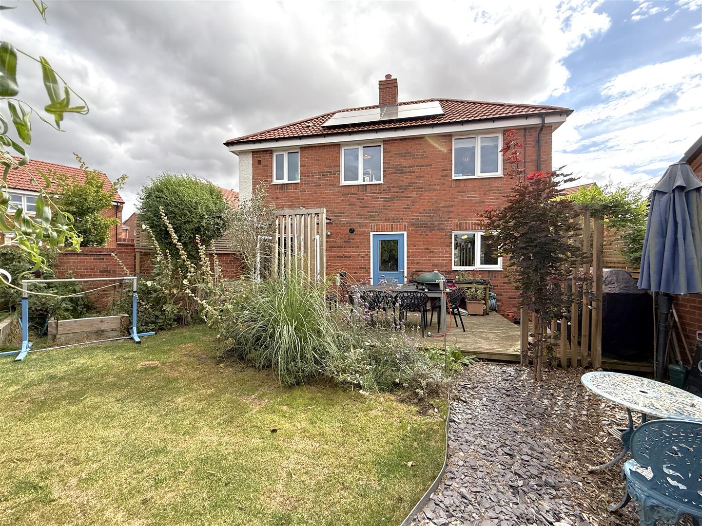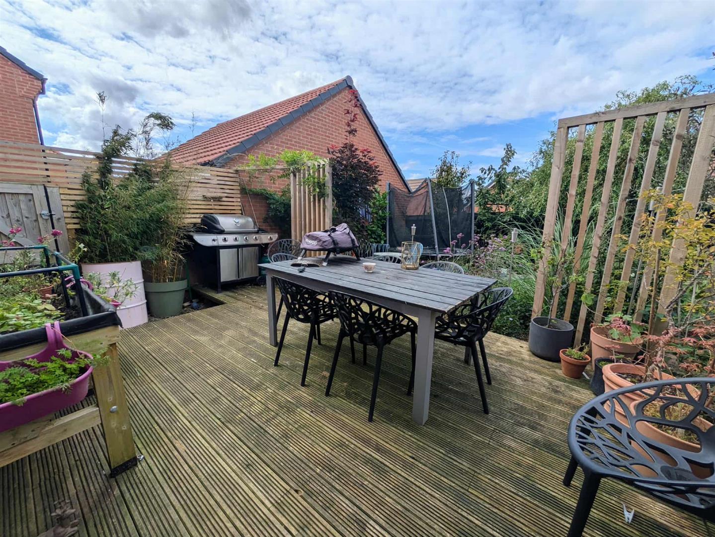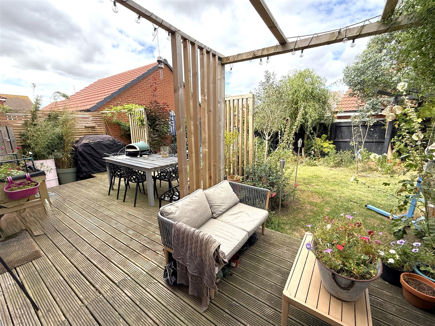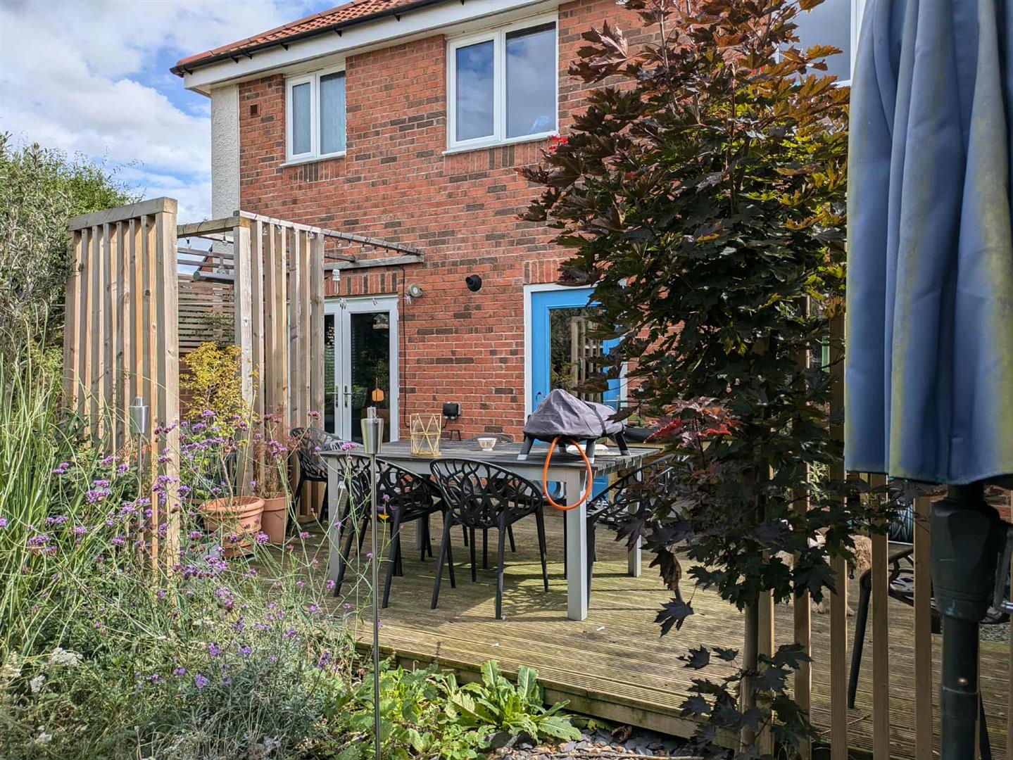 Exterior - The property occupies a pleasant corner plot within this now established development, benefitting from gardens to three sides and having a forecourt frontage which has been planted with a range of shrubs and has a central pathway leading to the front door. To the side of the property is a tandem length tarmacadam driveway which leads to a single brick and pantiled garage with up and over door. A courtesy gate gives access into an enclosed garden which has been landscaped to maximise privacy and is well stocked with an abundance of trees and shrubs, having a timber decked seating area, central lawn, purple slate pathway, raised timber sleeper borders and a horticultural area, all enclosed in the main by brick walls and feather edged board fencing.