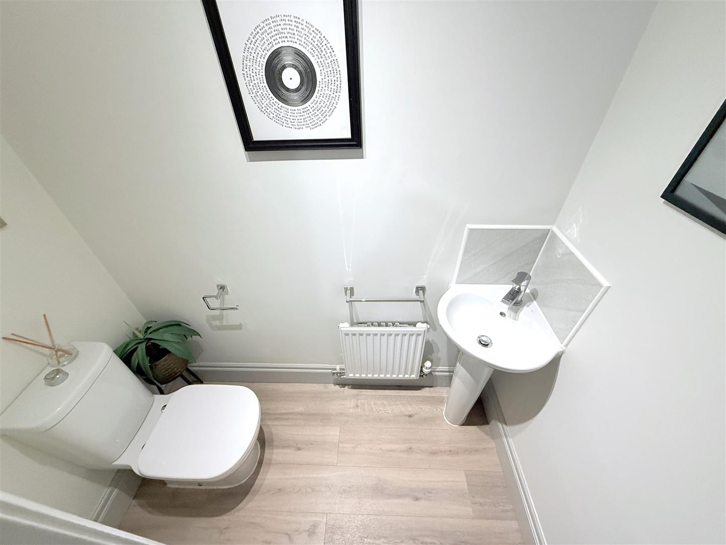 Ground Floor Cloakroom - 1.78m x 0.86m (5'10 x 2'10) - Having a contemporary two piece white suite comprising of close coupled WC, pedestal wash hand basin and chrome mixer tap, central heating radiator.