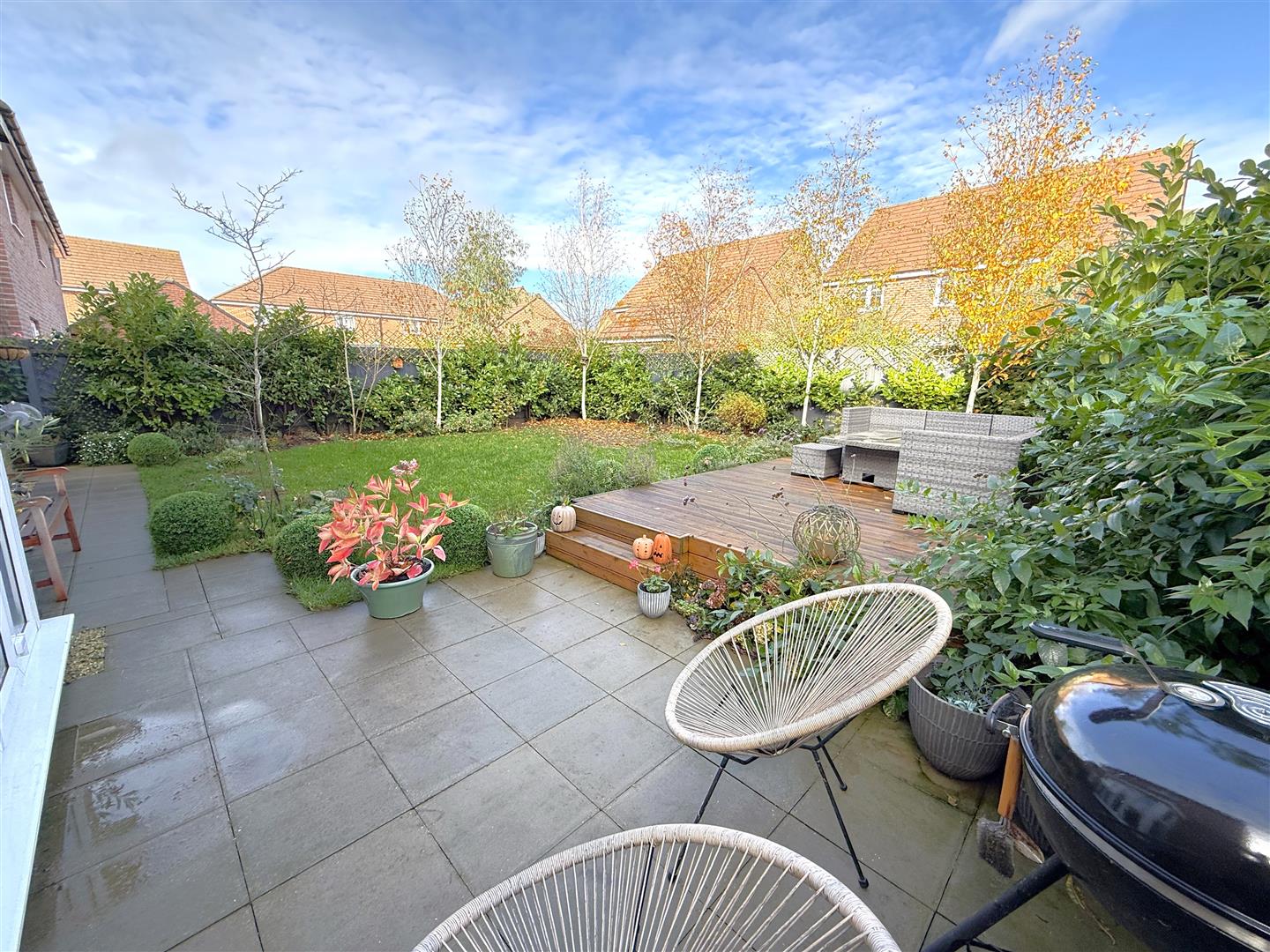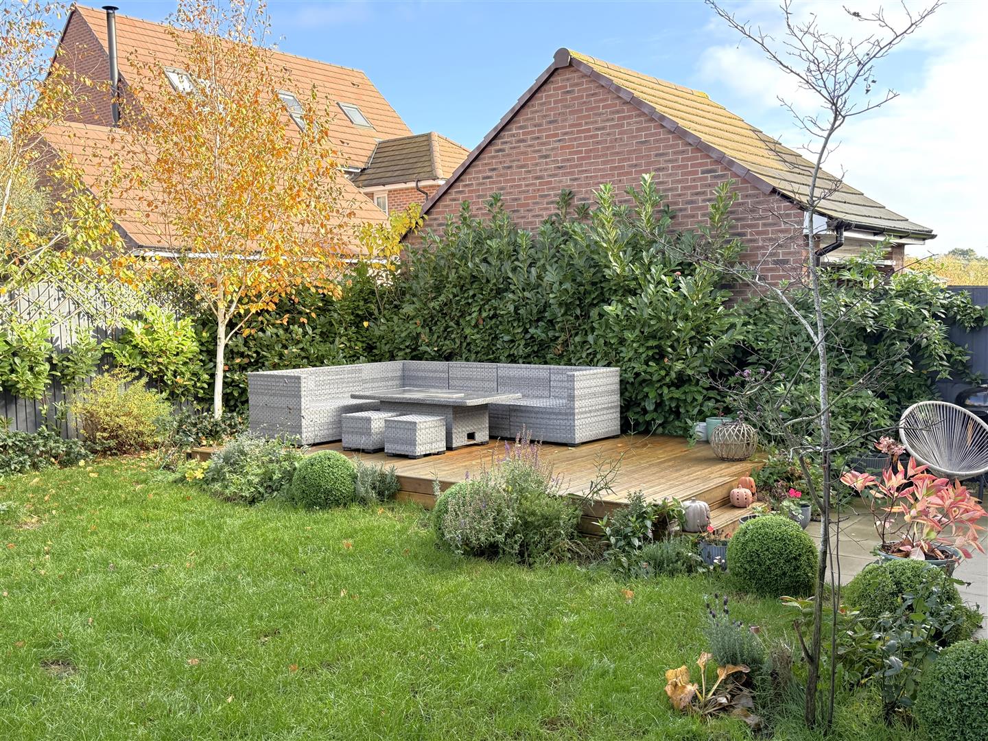 Rear Garden - Attractively landscaped and enclosed to all sides, with a timber decked seating area leading down onto a paved terrace which links back into dining area of the kitchen. The central part of the garden is laid to lawn with well stocked perimeter borders with established trees and shrubs, enclosed by panelled fencing and having exterior lighting and a cold water tap.