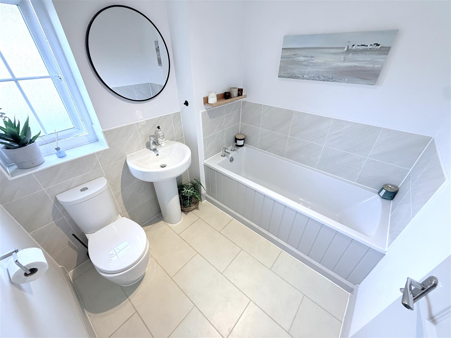 Bathroom - 2.16m x 1.93m (7'1 x 6'4) - Having a contemporary white suite comprising of close coupled WC, panelled bath with chrome taps, pedestal wash hand basin with chrome mixer tap, central heating radiator, double glazed window to the rear.