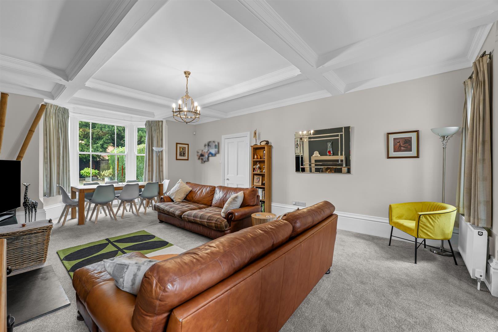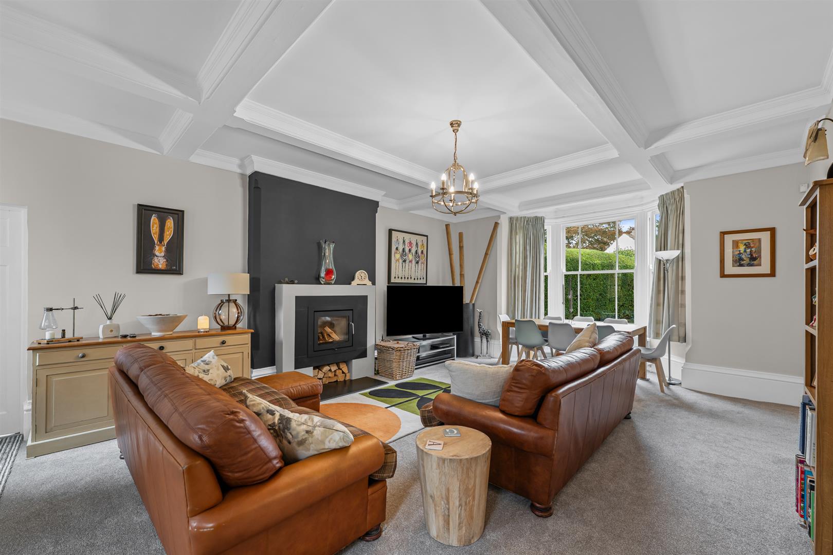 Sitting/Dining Room - 8.23m max into bay x 4.98m (27' max into bay x 16' - A truly stunning and well proportioned reception space offering elements of grandeur with an attractive high ceiling, a beautiful contemporary fireplace with inset log burning stove, high corniced ceiling, deep skirtings and architrave, sealed unit double glazed sash windows to both the front and rear and French doors leading through into: